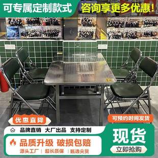 贵州不锈钢蜂窝煤桌子灶火锅桌烙锅桌烧烤桌圆形方形一体折叠桌子