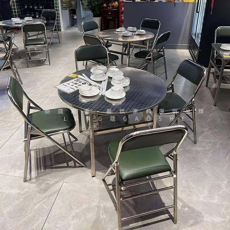 不锈钢转盘圆桌家用加厚餐桌商用饭桌饭台火锅电磁炉一体折叠桌子