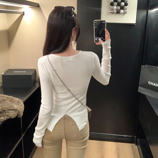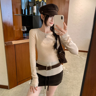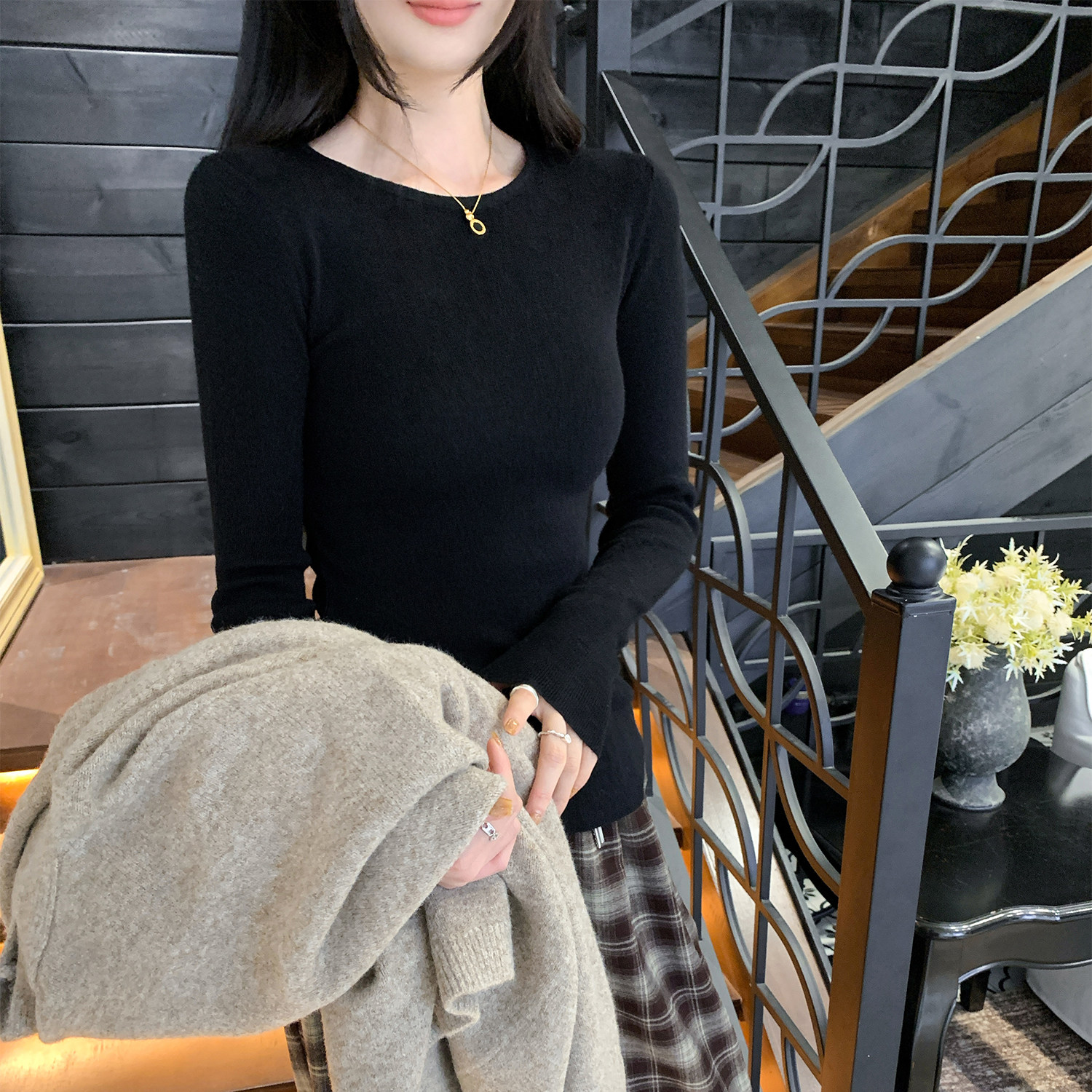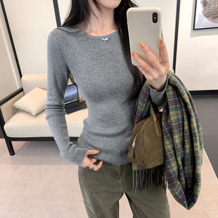 气质打底衫 圆领修身 女秋冬穿搭高级感法式 针织衫 上衣 毛衣内搭长袖