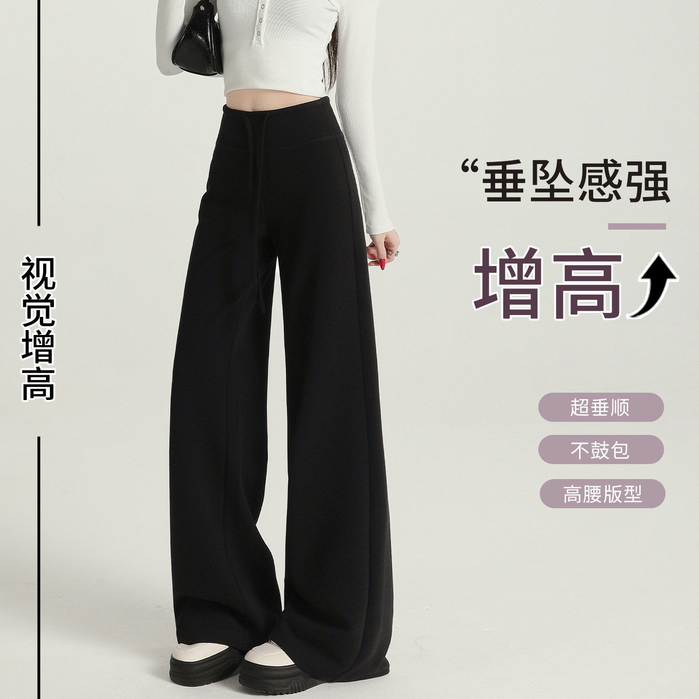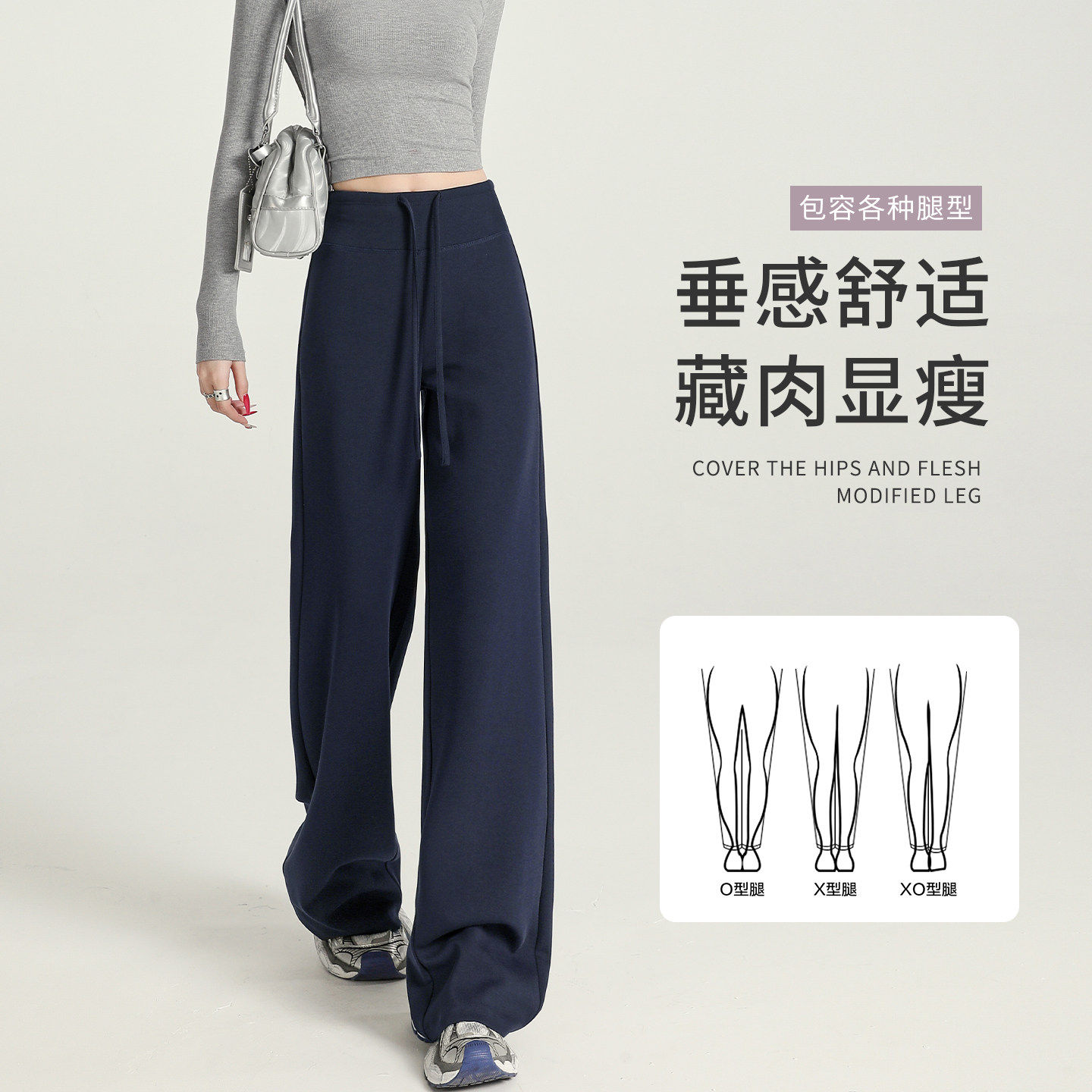 运动阔腿裤 秋冬加绒微喇面膜休闲直筒卫裤 子女2025新款 灰色糯米裤