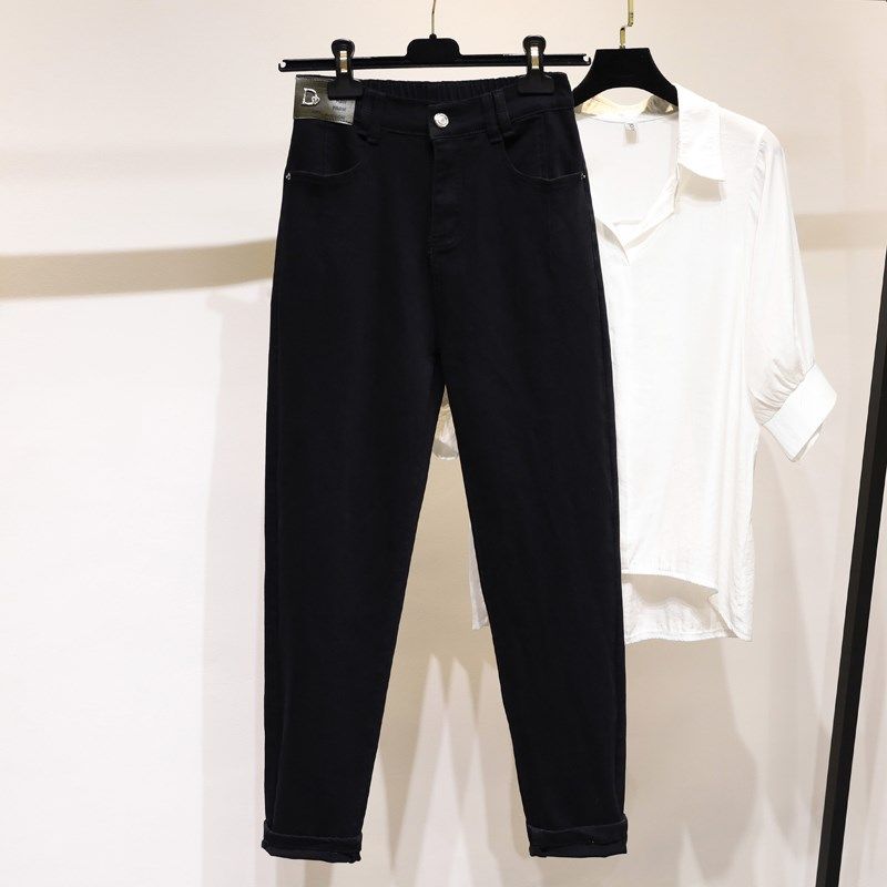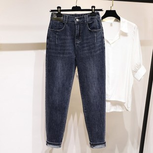 子显瘦200斤梨形身材遮肉哈伦裤 女弹力宽松高腰胖MM裤 牛仔裤 大码