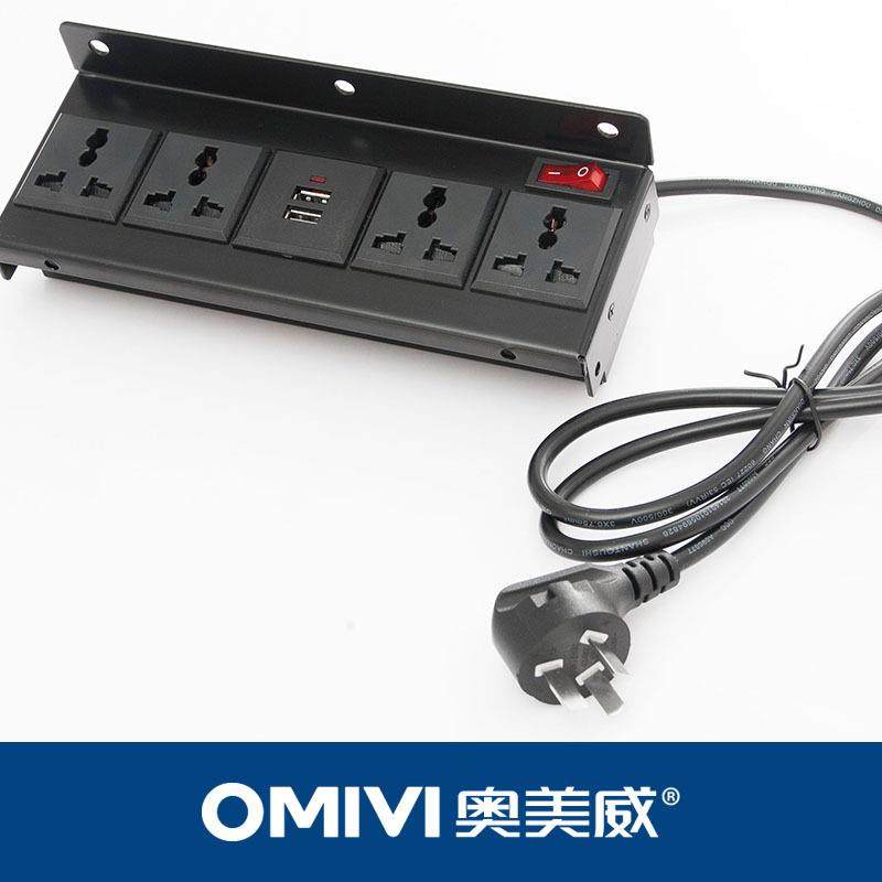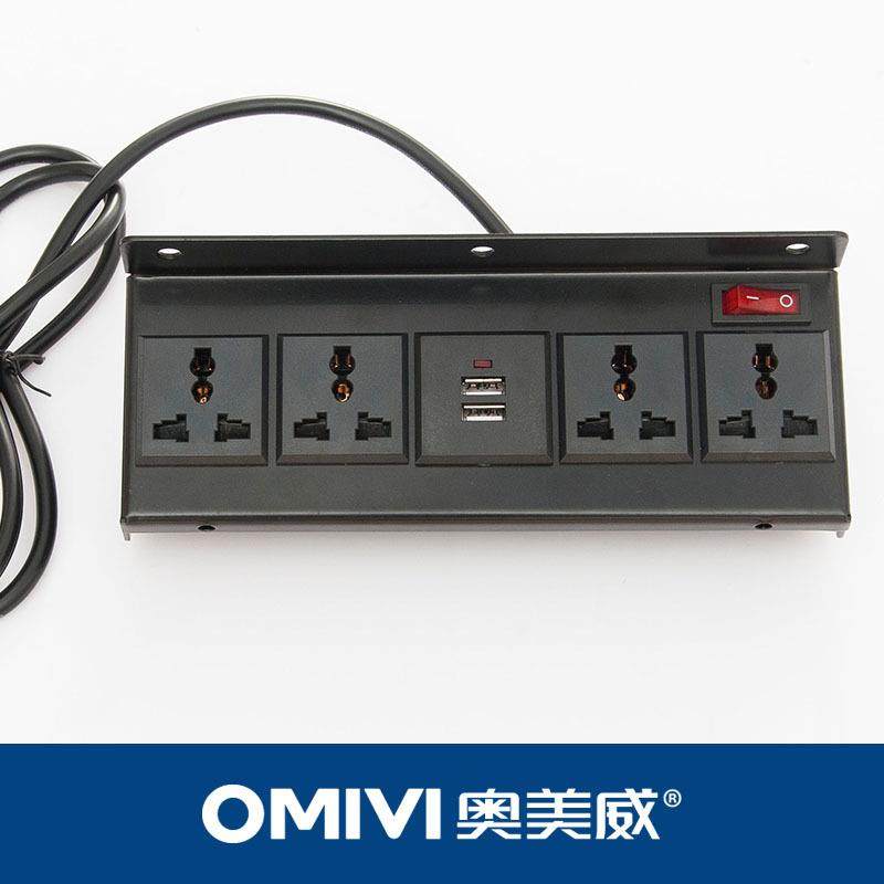 嵌入式 双侧滑盖桌面插座带开关办公室会议桌五孔USB插座无线充电