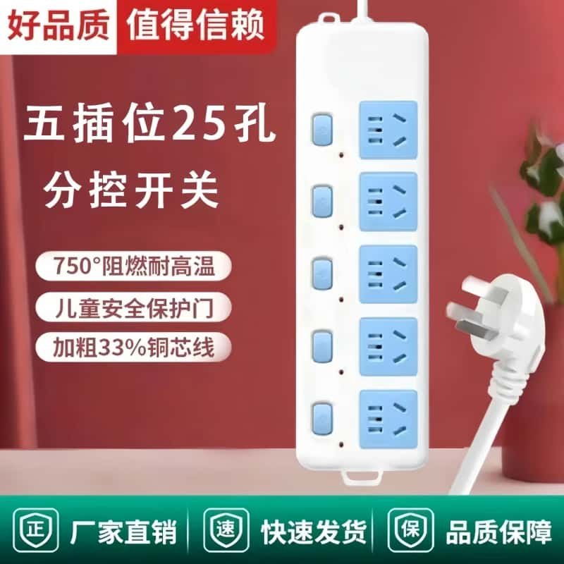 纯铜新国标家用多功能带线插排排插板插线板接线板拖线电源延长线