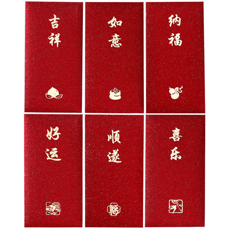 6个装 2025新款 恭喜发财红包利是封婚礼喜庆压岁包烫金中式