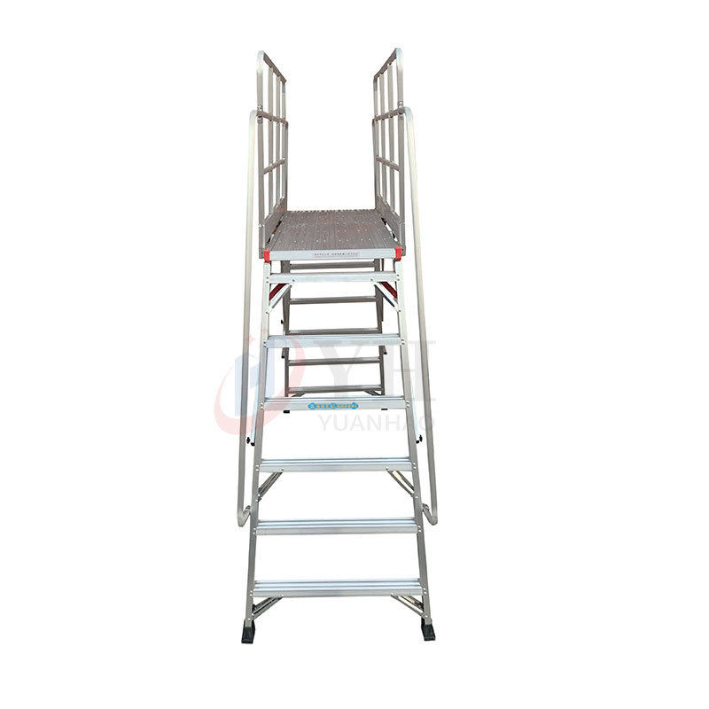 缘浩厂家2.5米安全防护平台梯铝合金扶手工程梯7步梯可移动爬梯