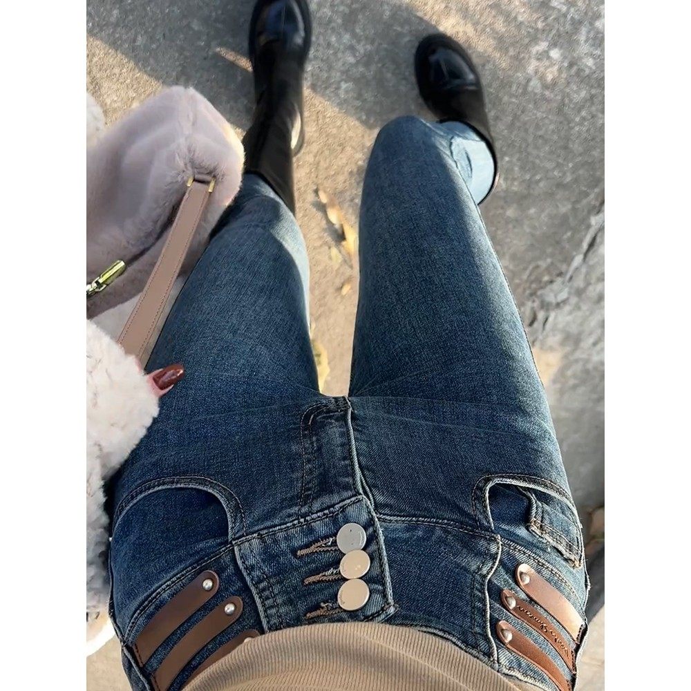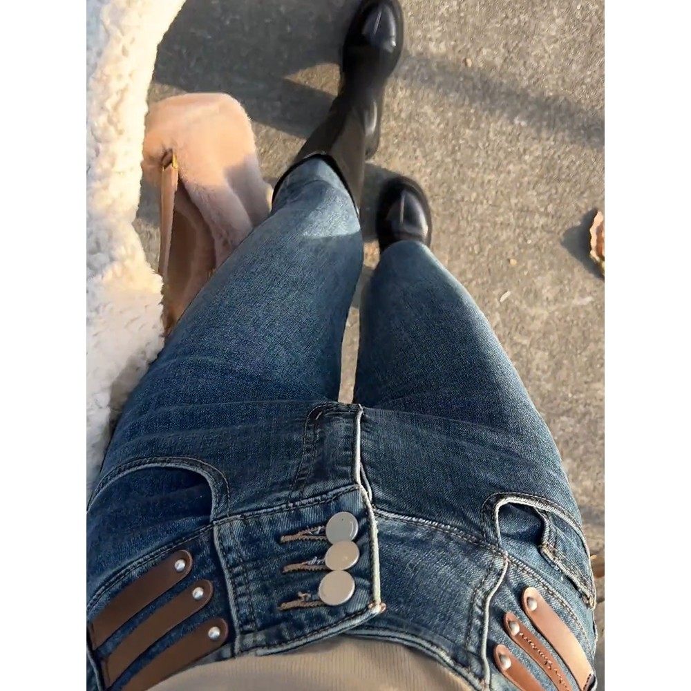 通勤气质加绒保暖百搭牛仔哈伦裤 IEF 时尚 韩版 爱依服2025秋冬新款