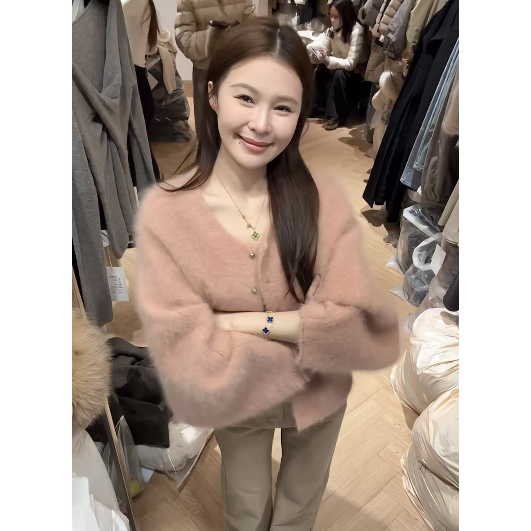 洋气加厚羊绒衫 时尚 女士半开拉链领针织打底毛衣秋冬季 春竹羊毛衫