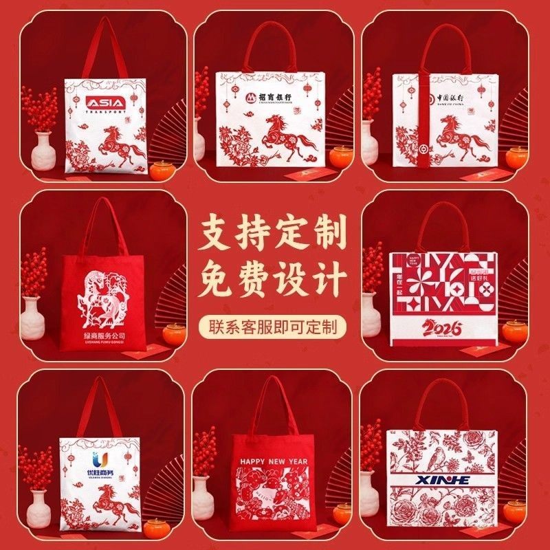 马年帆布袋2026新年礼袋手提袋伴手礼包元 旦年会公司礼品手袋定制