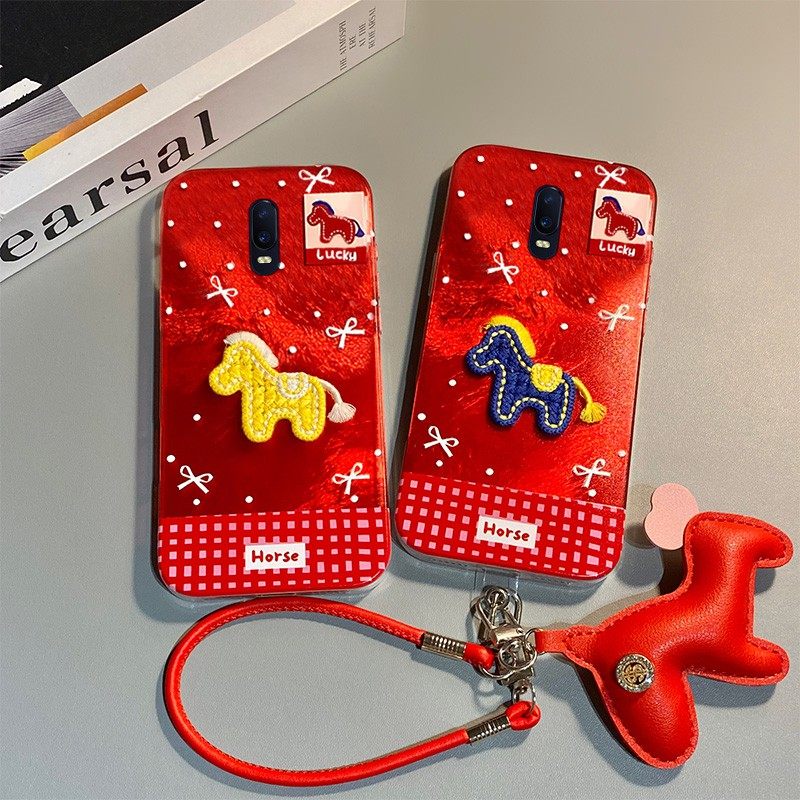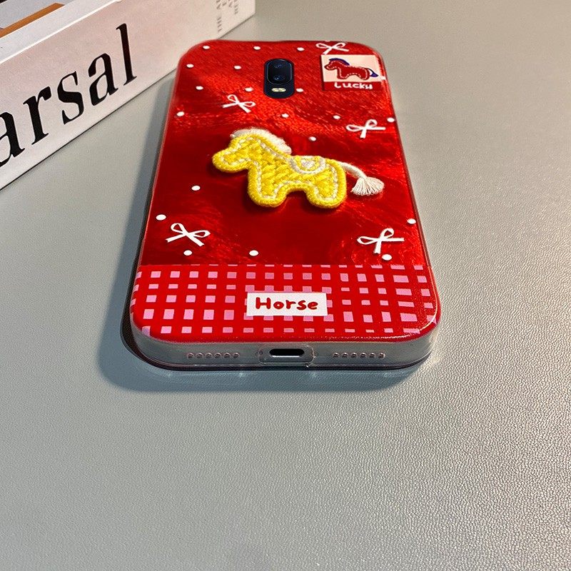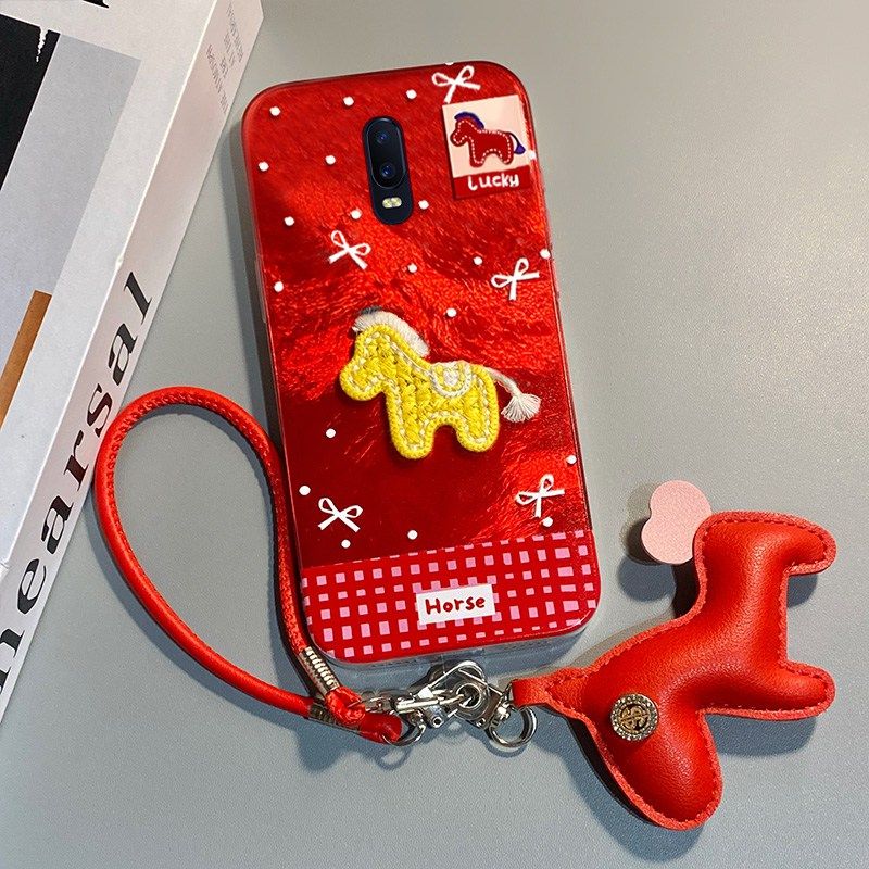 2026刺绣小马适用oppor17手机壳r15x带r11splus挂件r11s挂绳r9新年r9plus红色r7s棋盘格r17pro马年oppo卡通女