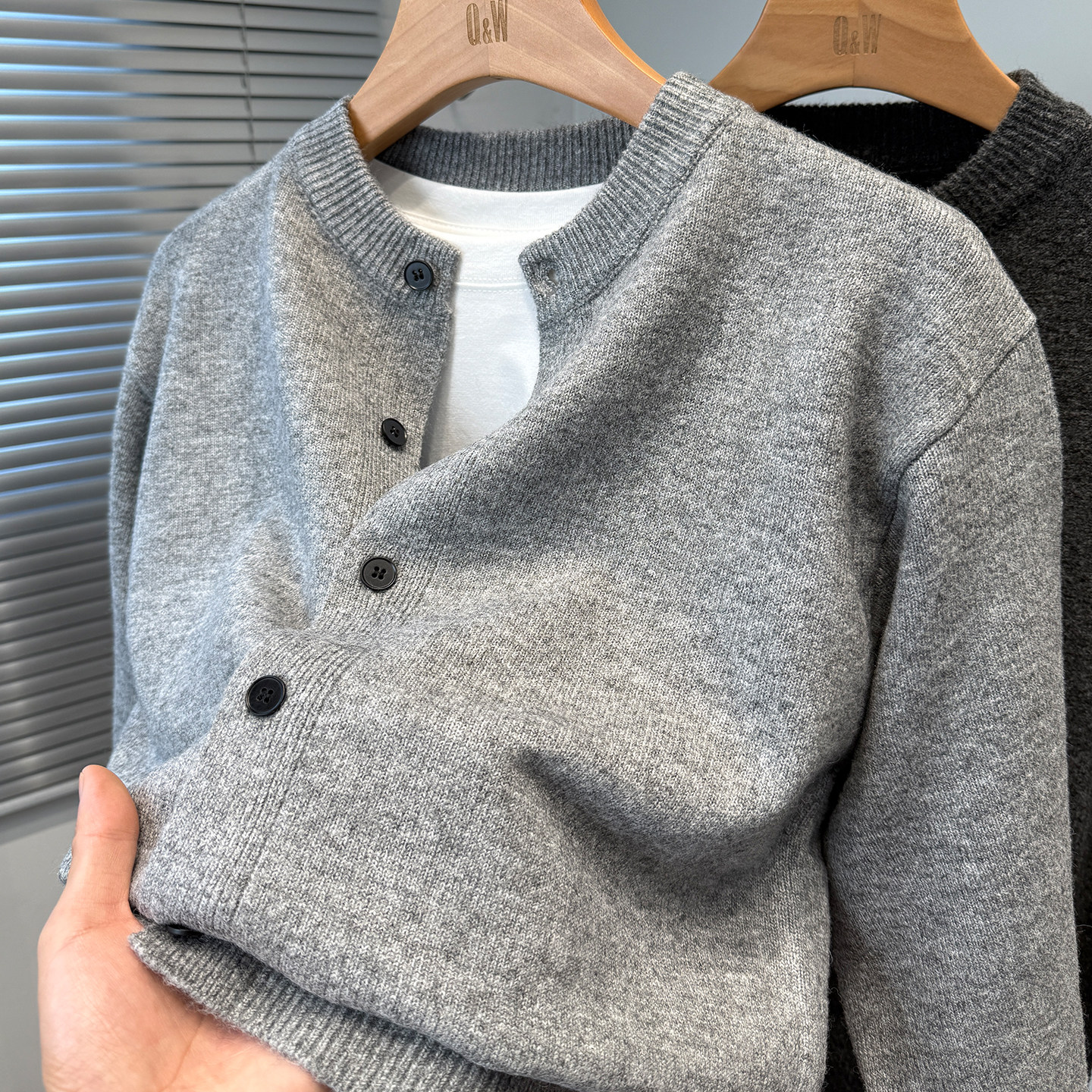 高级感青年毛衣外套男款 男针织衫 圆领外搭休闲单排扣 百搭开衫 经典