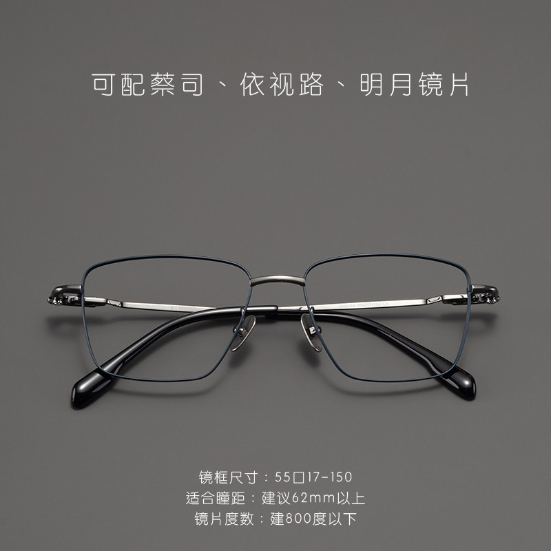 155mm大脸眼镜框男款 气质商务方框潮 超轻纯钛眼镜架近视可配男士