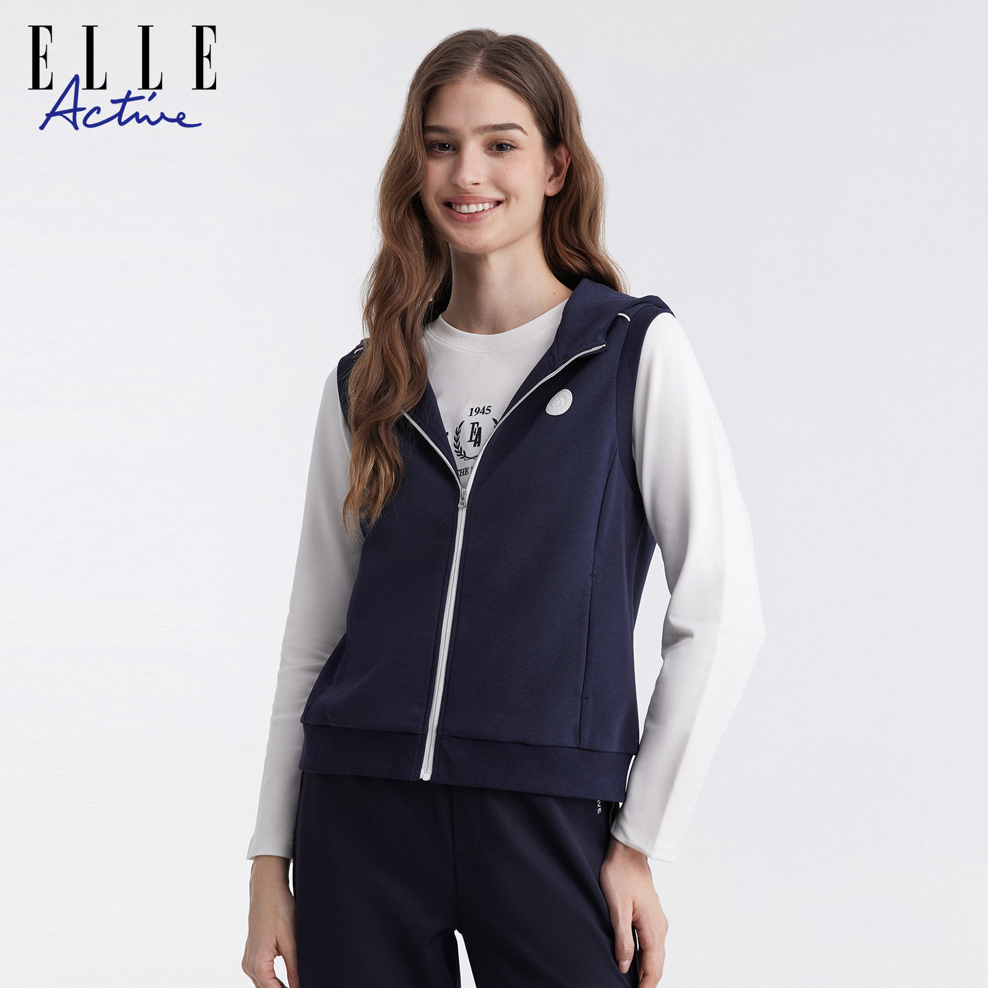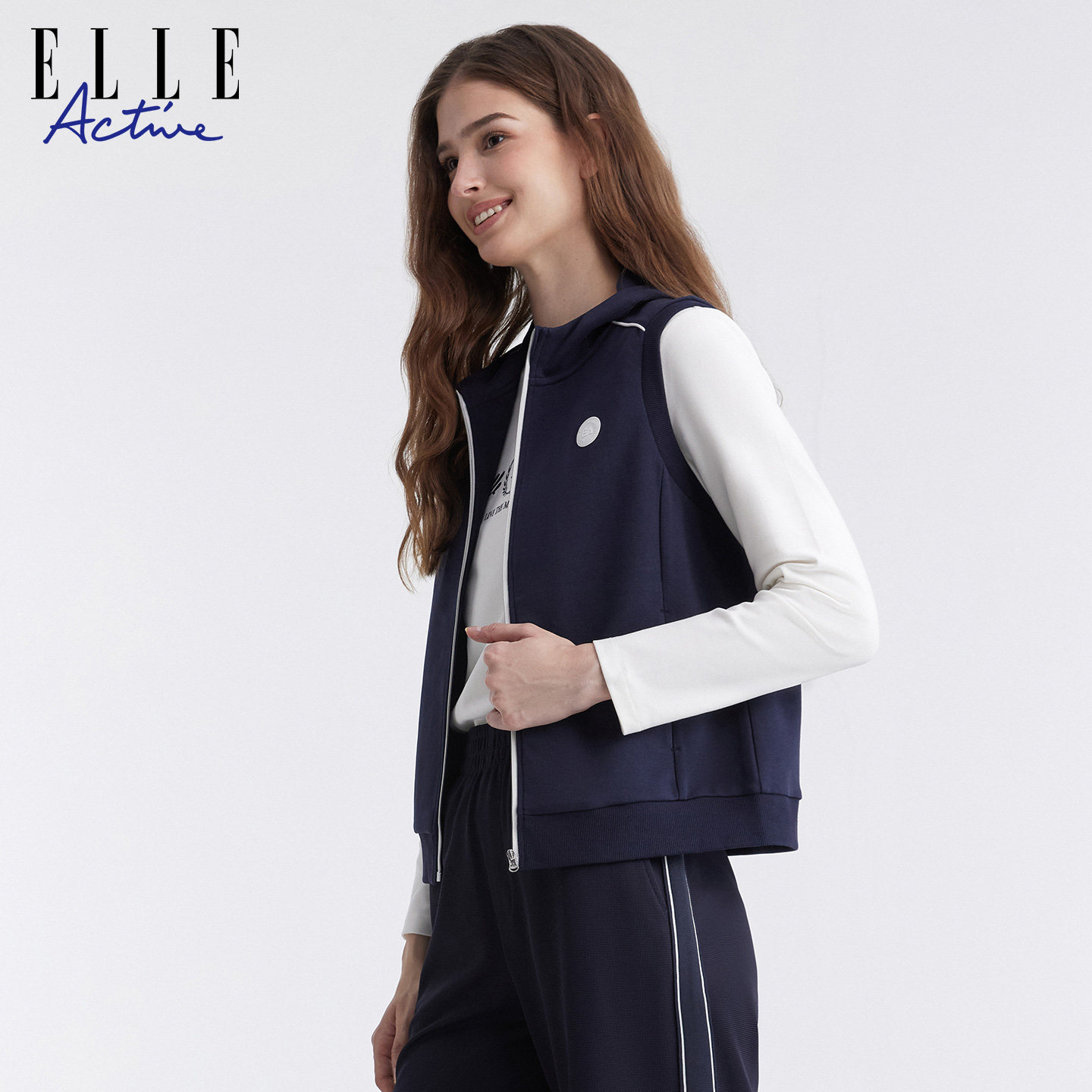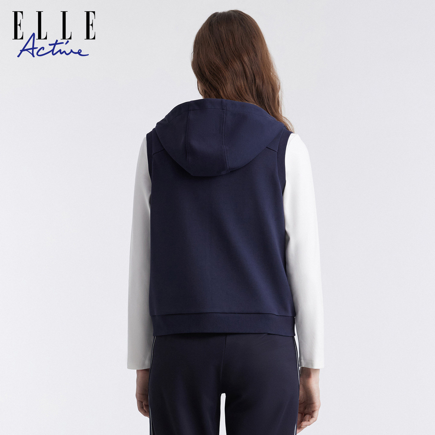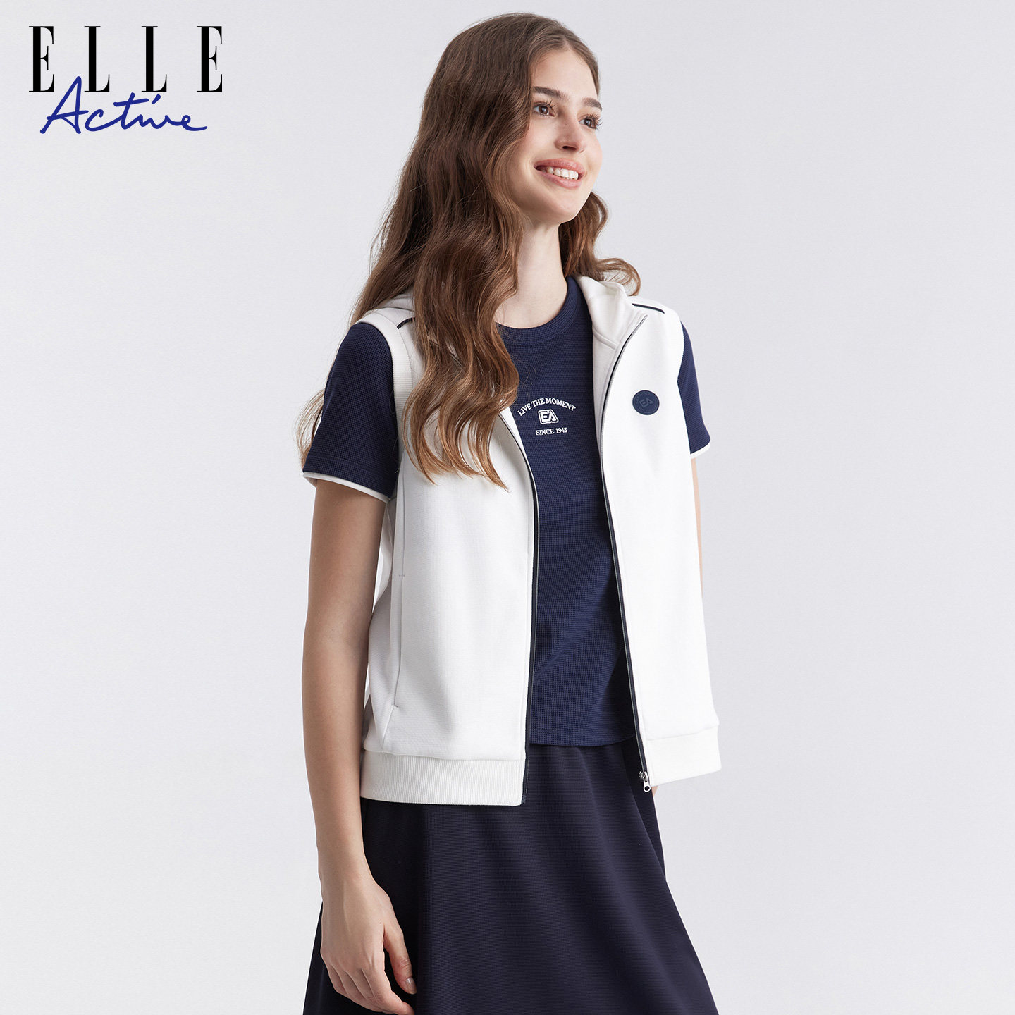 上衣白色 百搭无袖 ELLE Active户外穿搭运动马甲连帽背心外套时尚