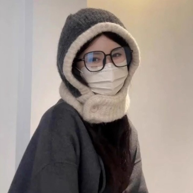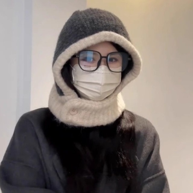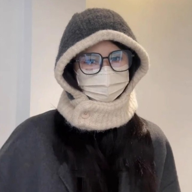 针织毛线帽子围巾一体帽子显脸小适合方圆脸女款 加厚保暖 秋冬季