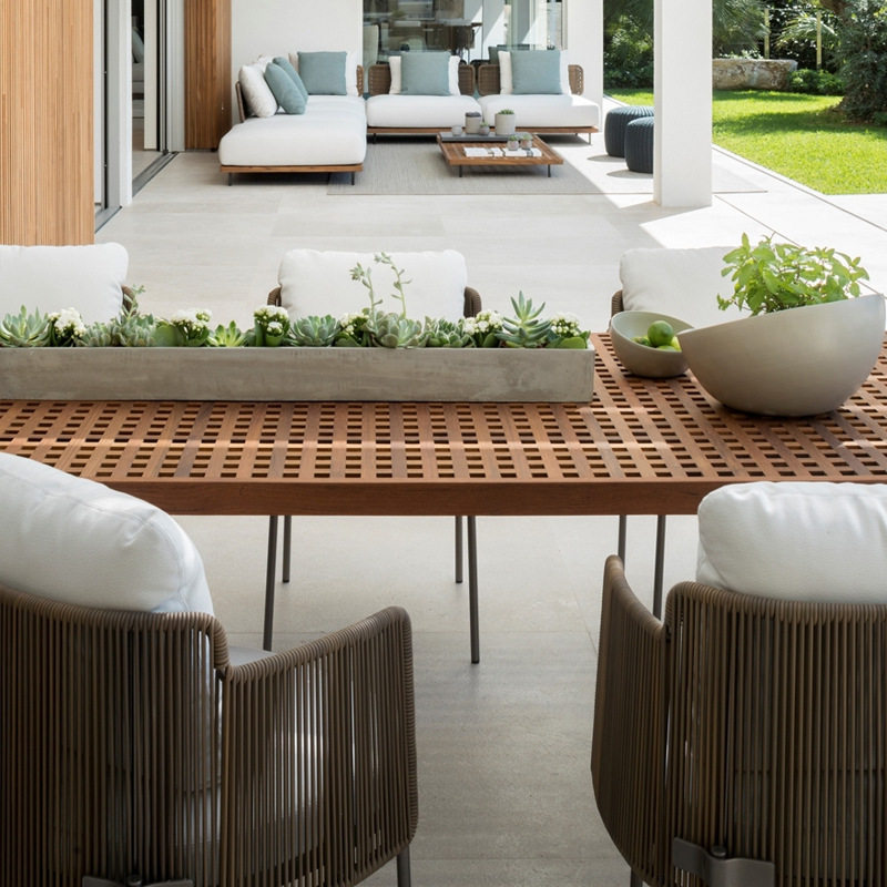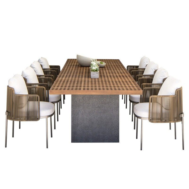 户外藤编桌椅组合高端庭院家具花园沙发藤椅阳台柚木长桌餐椅商用