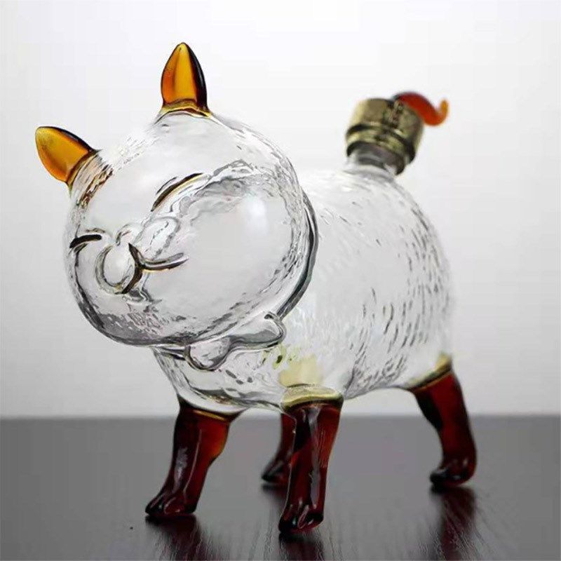 厂家创意福猫泡酒瓶加厚高硼硅玻璃酒瓶密封酒瓶醒酒器家用倒酒器