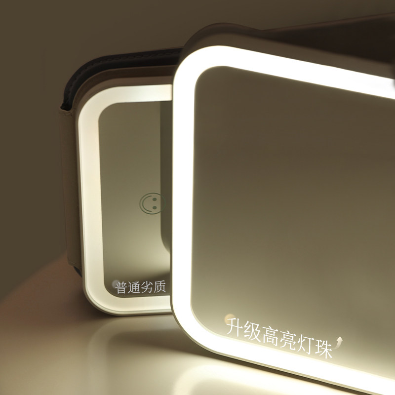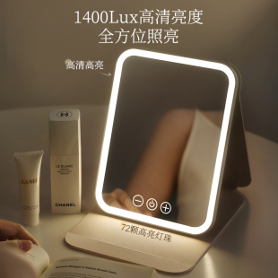 led化妆镜带灯折叠梳妆台智能高清台式 便携随身学生宿舍桌面镜子