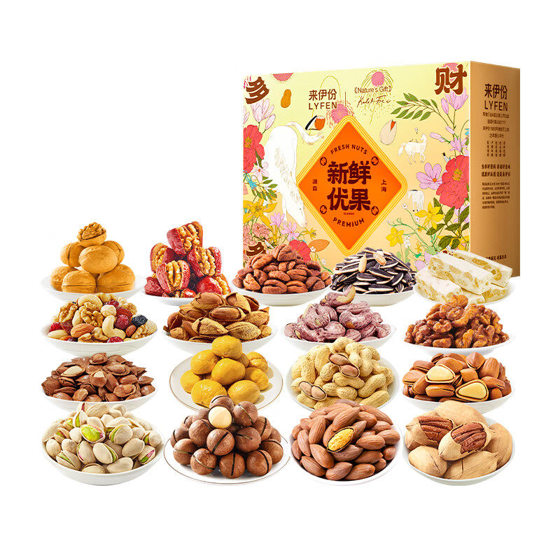 来伊份新鲜优果金 多财多亿坚果礼盒1953g节日送礼长辈休闲零食