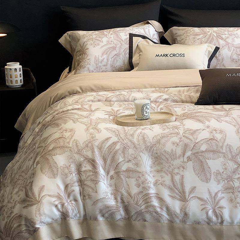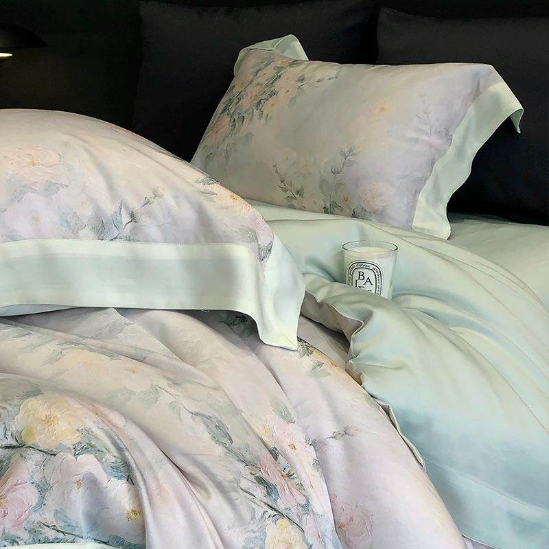 悠雅舒柔细旦冷凝丝园艺系列1.5米1.8米2.0米天丝顺滑床单四件套