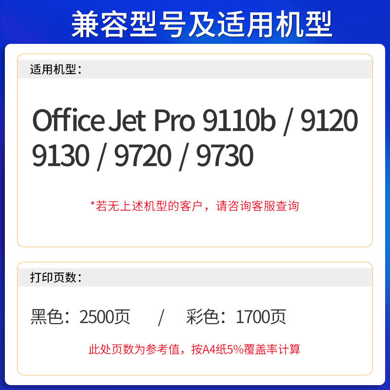 9120喷墨打印机墨水OfficeJet 9110b墨盒9130 Pro 9110b 9130彩色复印机一体机墨水盒hp938 适用惠普 9120