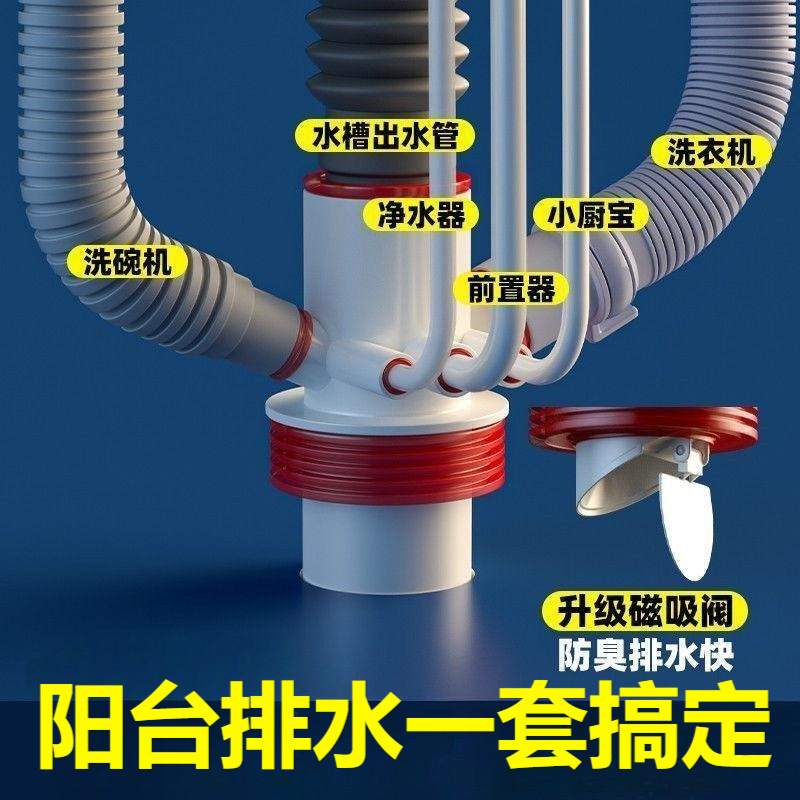 厨房下水管三头通水槽排水管净水器下水道防返臭神器下水器密封圈