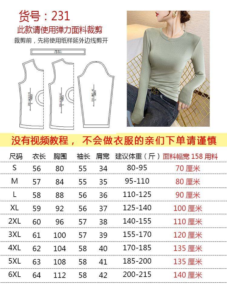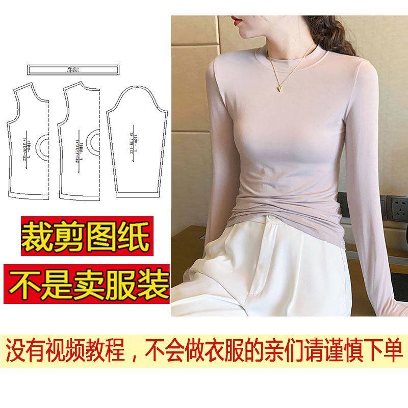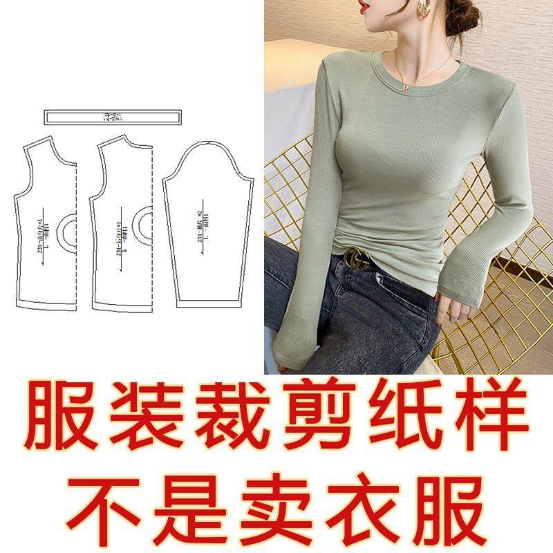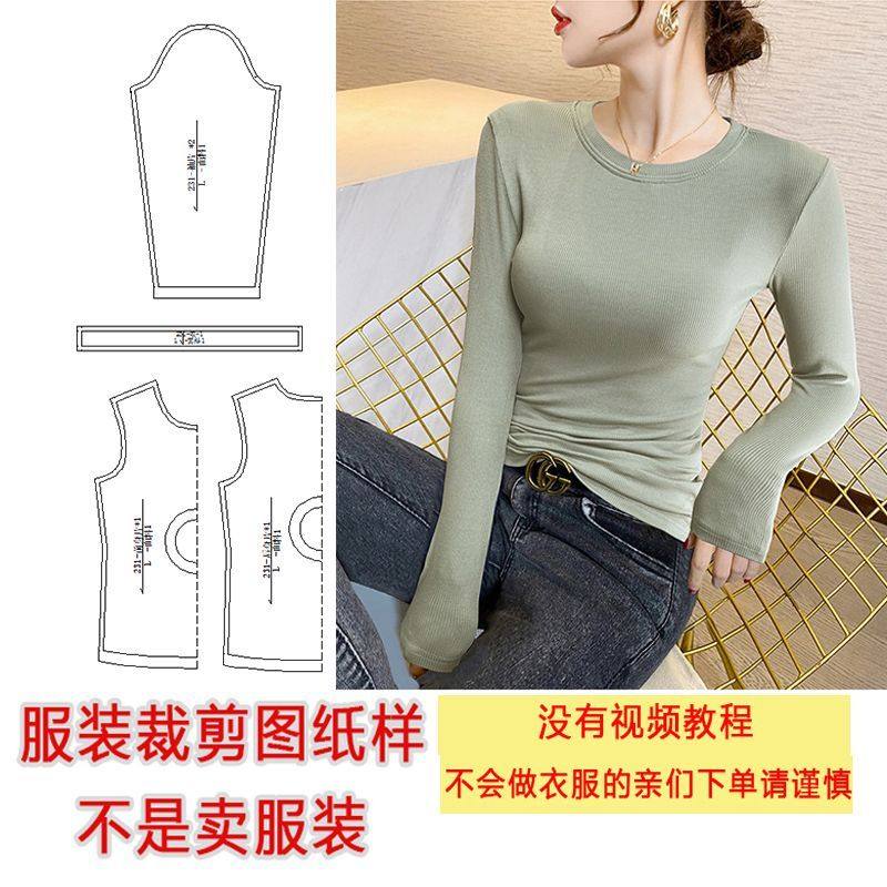 纸样秋季 外穿时尚 衣女装 打底衫 圆领显瘦T恤裁剪图纸样DIY 长袖 服装