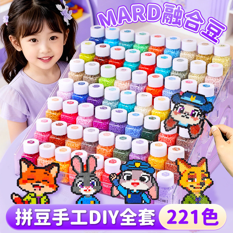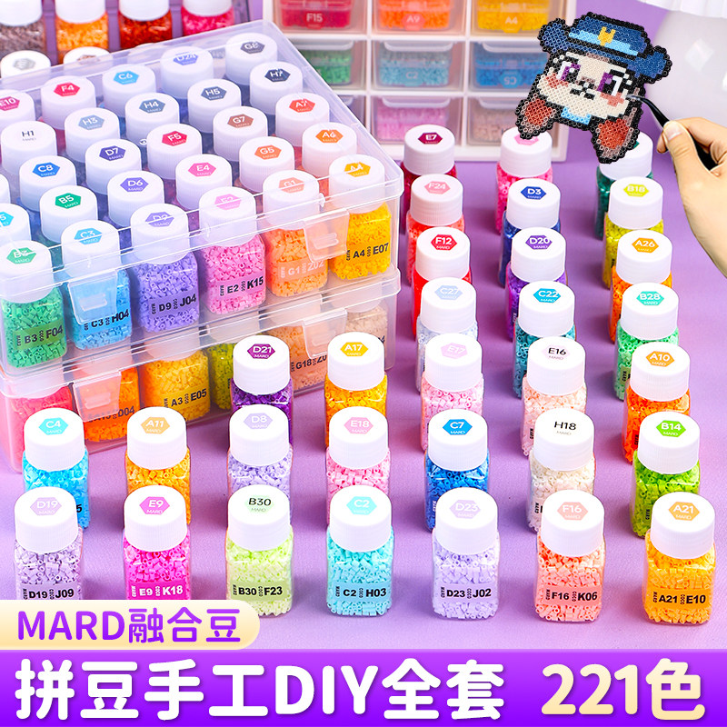 拼豆套装 221色全套mard拼豆豆手工diy材料包工具立体融合补充包