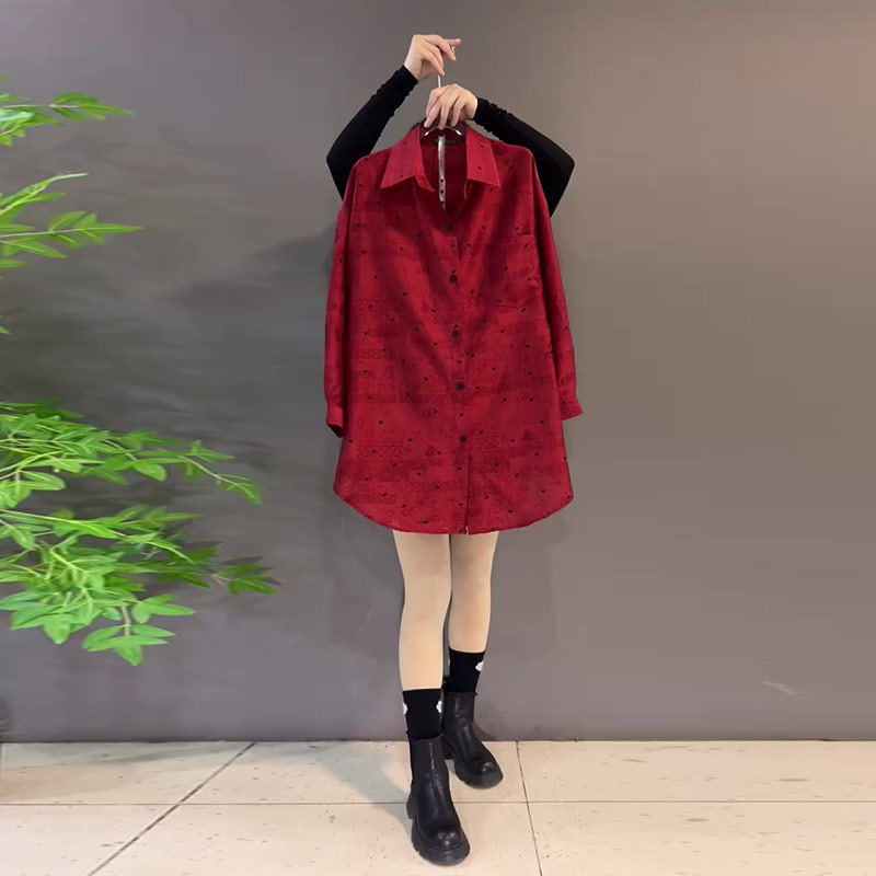 加肥女翻领满身爱心长袖 胖妹妹气质宽松遮肚子轻熟风洋气上衣 衬衫