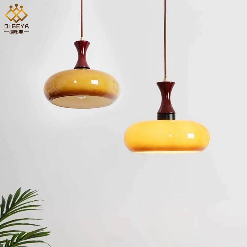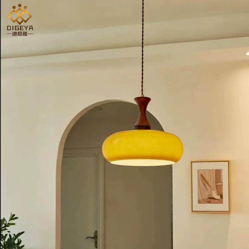 创意现代简约包斯豪中古木艺实木吊灯胡桃木名宿卧室床头阳台吊灯