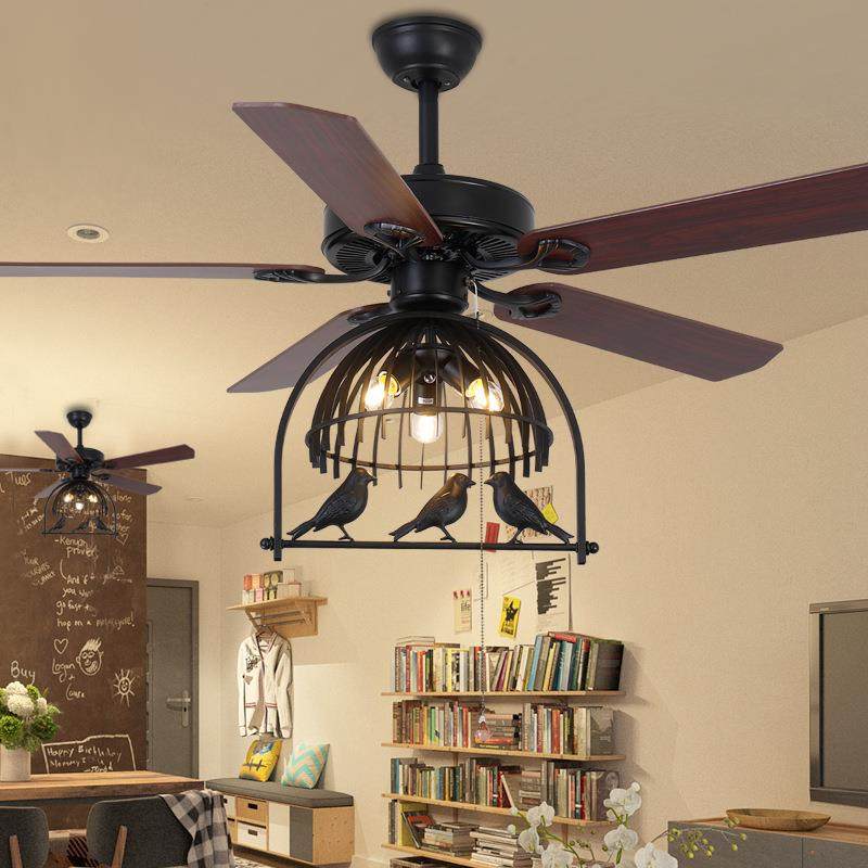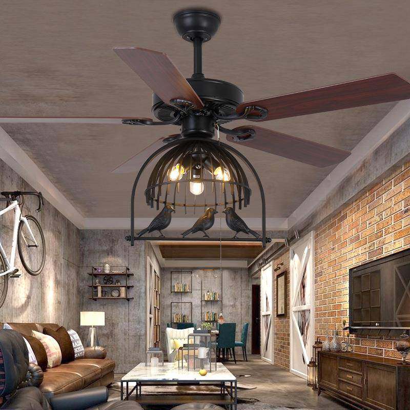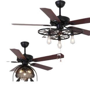 创康风扇灯CK9006北欧风格 带灯风扇工业风风扇吊灯黑色复古风扇灯