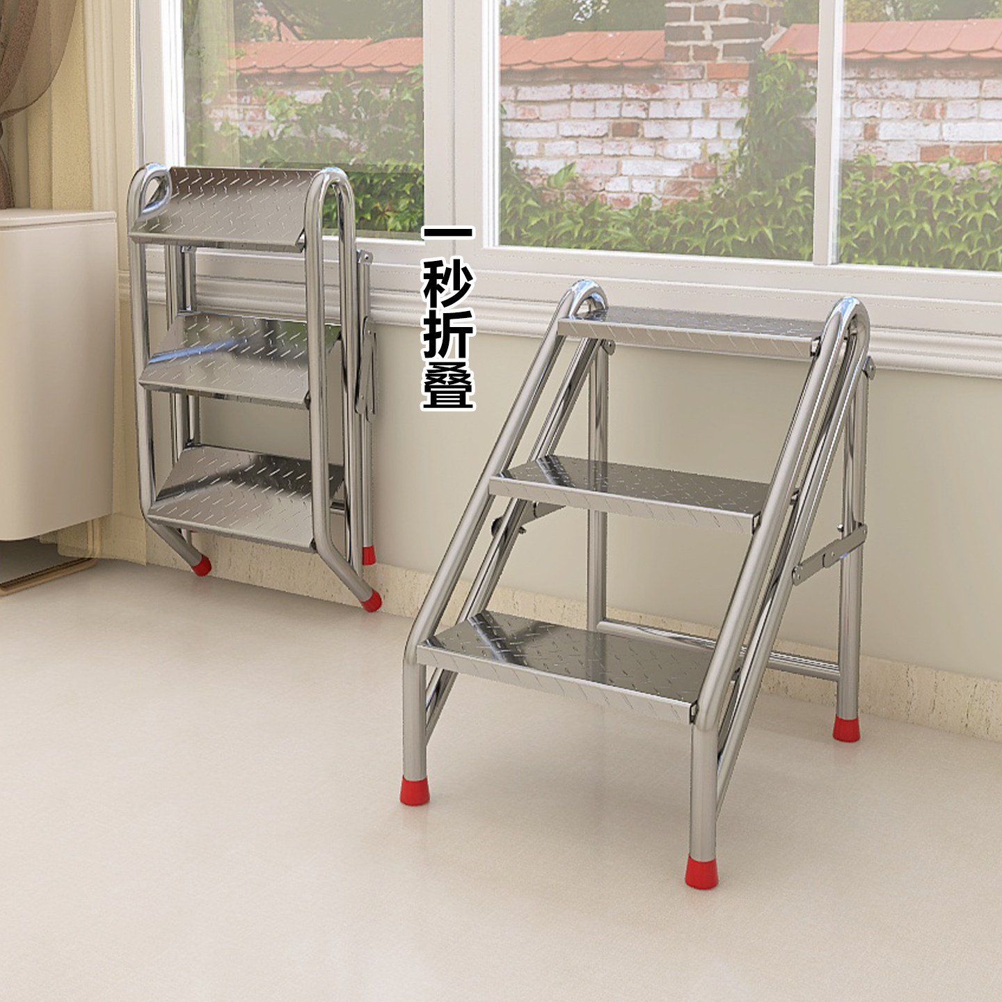 不锈钢梯子家用折叠梯加厚加粗款 人字梯凳楼梯踏步台阶登高梯爬梯