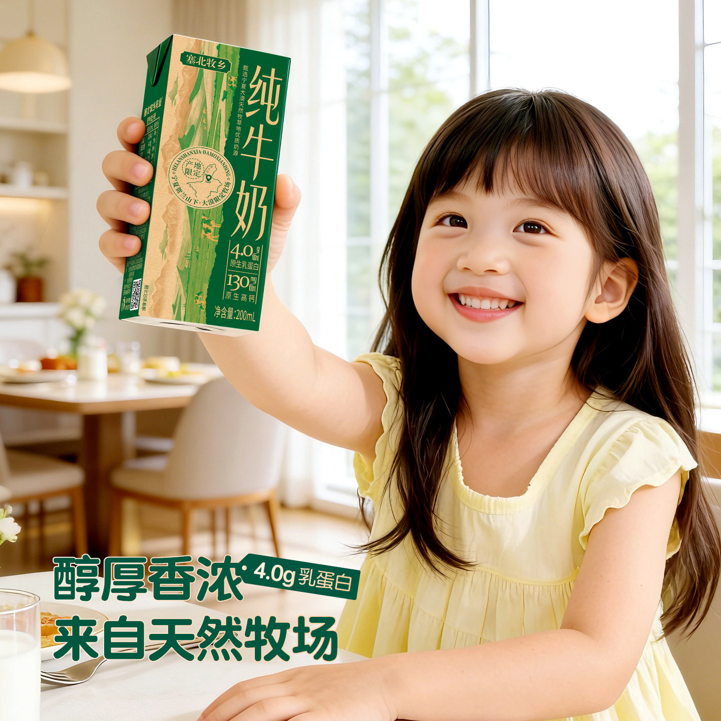 礼盒}宁夏塞北牧乡纯牛奶4.0蛋白学生200mlx10盒高钙高原生牛乳