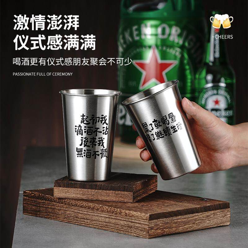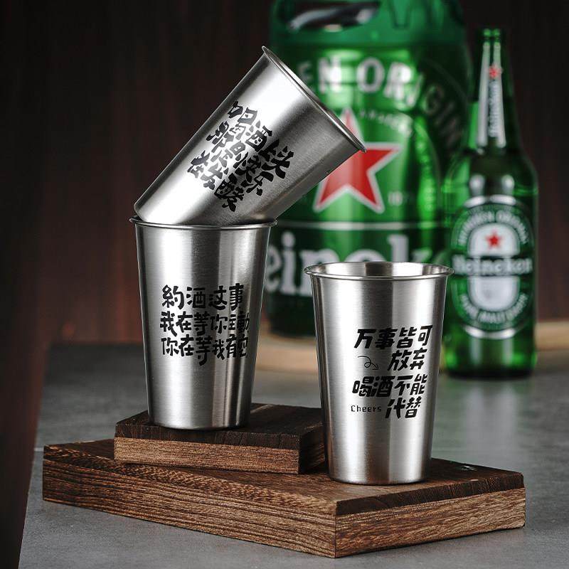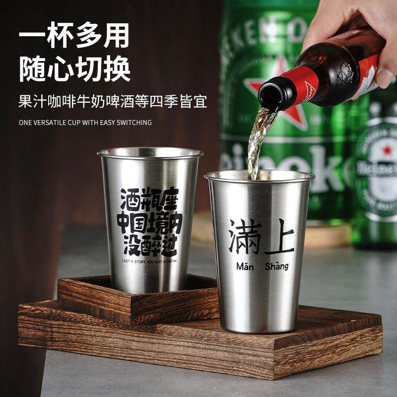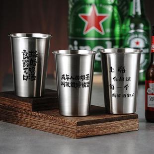 304不锈钢杯子单层水杯ins啤酒杯冷饮杯餐厅果汁杯防摔杯刻字定制