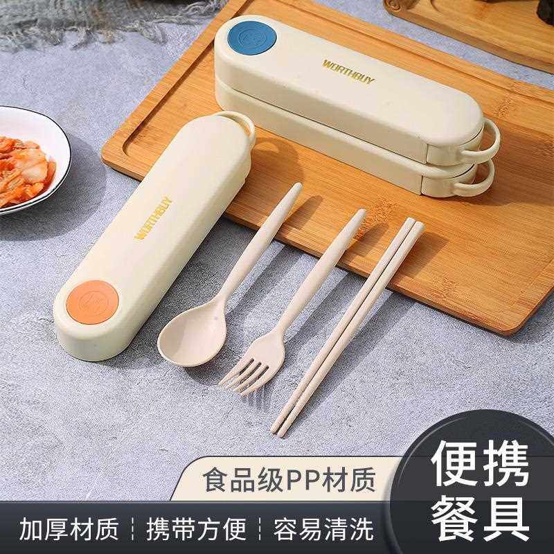 新款 便携餐具三件套一人用小学生外带旅行可 直销VFP筷子勺子套装