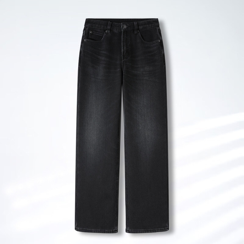 海澜之家加绒加厚直筒牛仔裤 子男士 秋冬季 保暖微弹长裤 新款 HLA