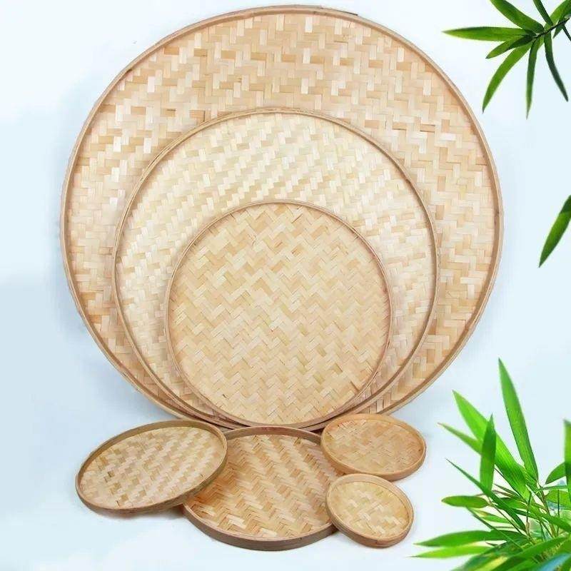竹编簸箕大号圆形无孔晾晒茶叶筛子装 饰幼儿园绘画画舞蹈道具竹匾