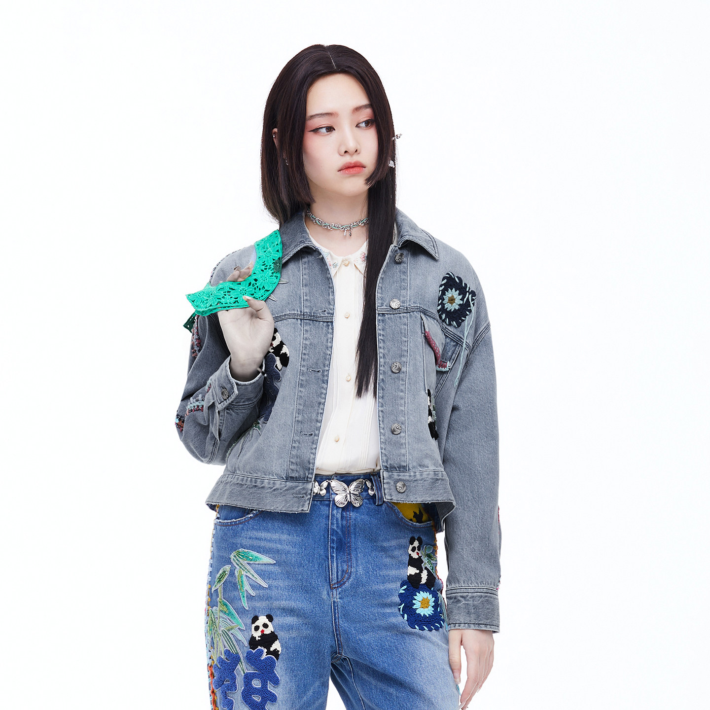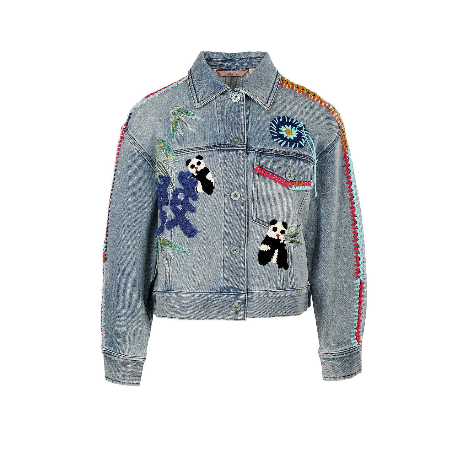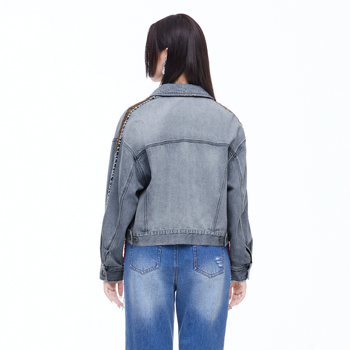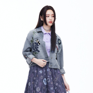 外套FGIA3122 牛仔外套国风刺绣复古水洗做旧短款 渔牌2026春装 新款