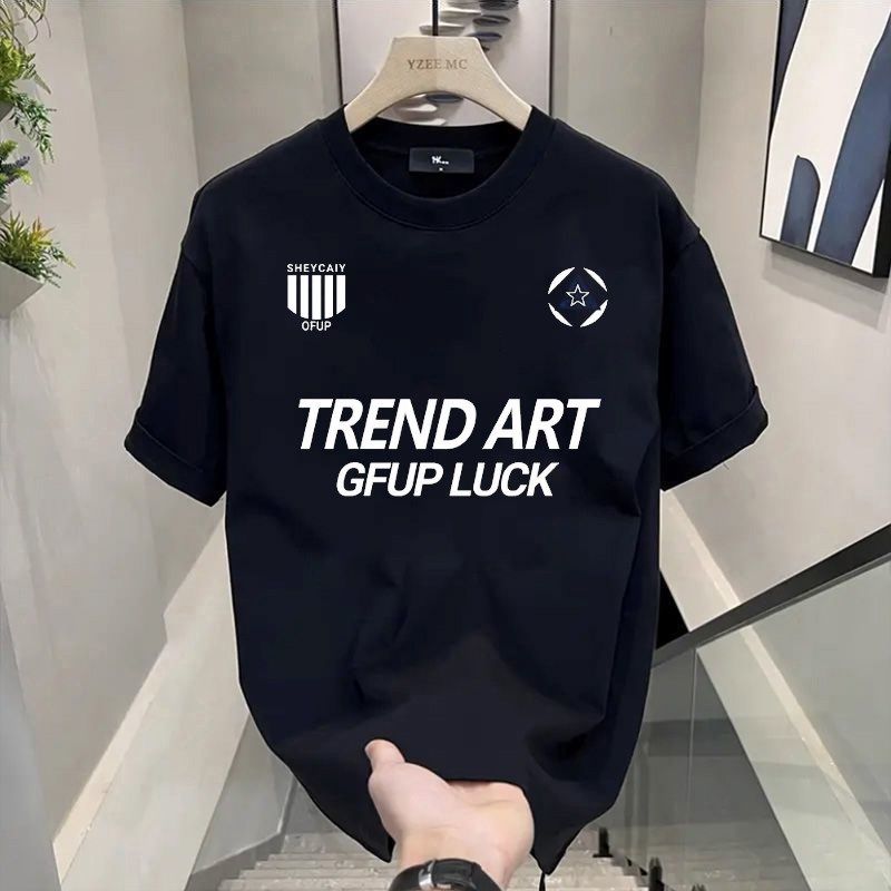 圆领休闲半袖 夏季 手帕 简约T恤痞帅潮流印花男款 重磅纯棉潮牌美式