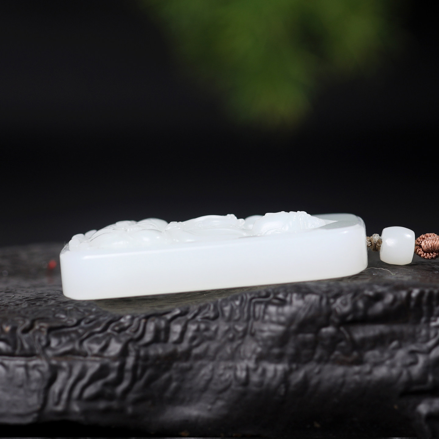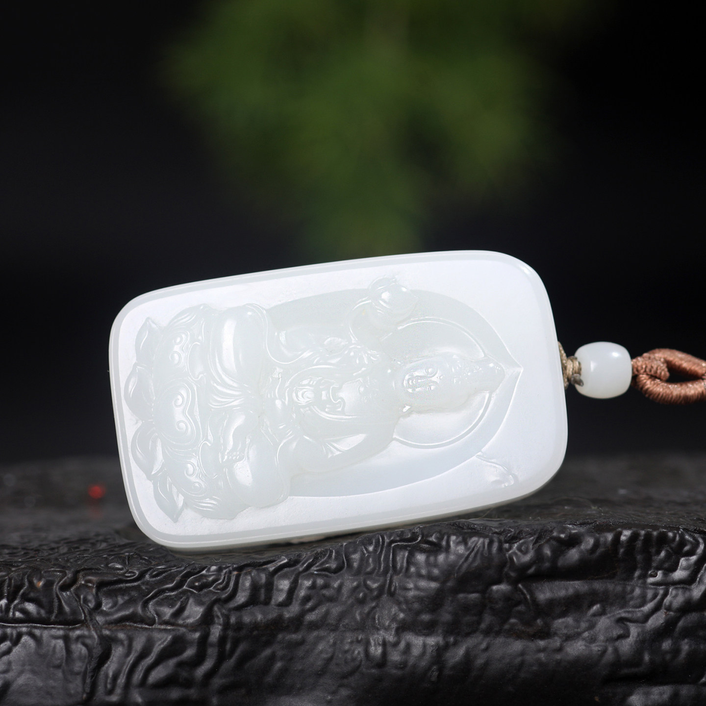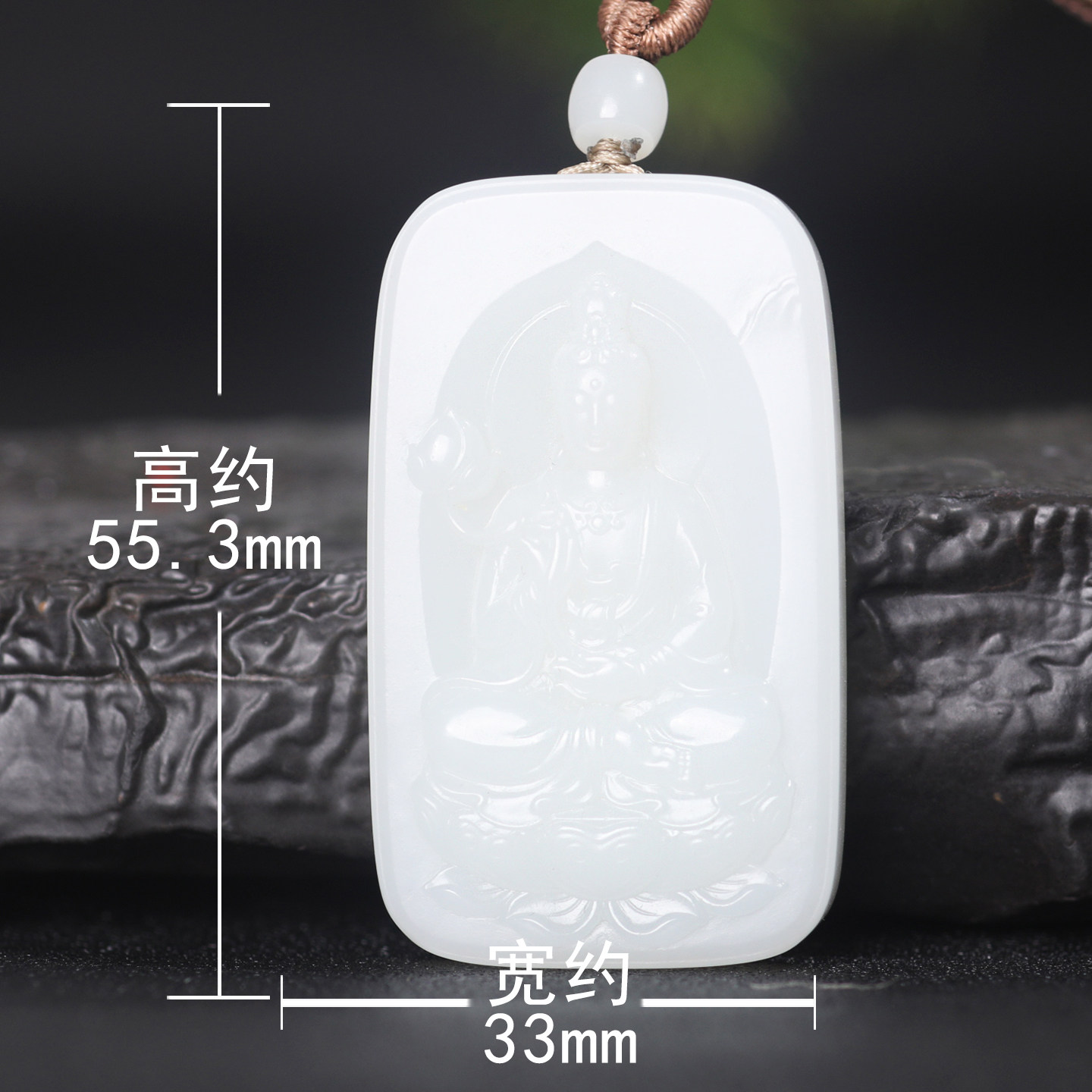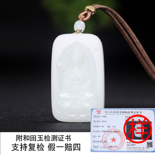 珪宝和田玉羊脂玉莲花观音吊坠男士 玉牌玉挂件天然玉石项链带证书