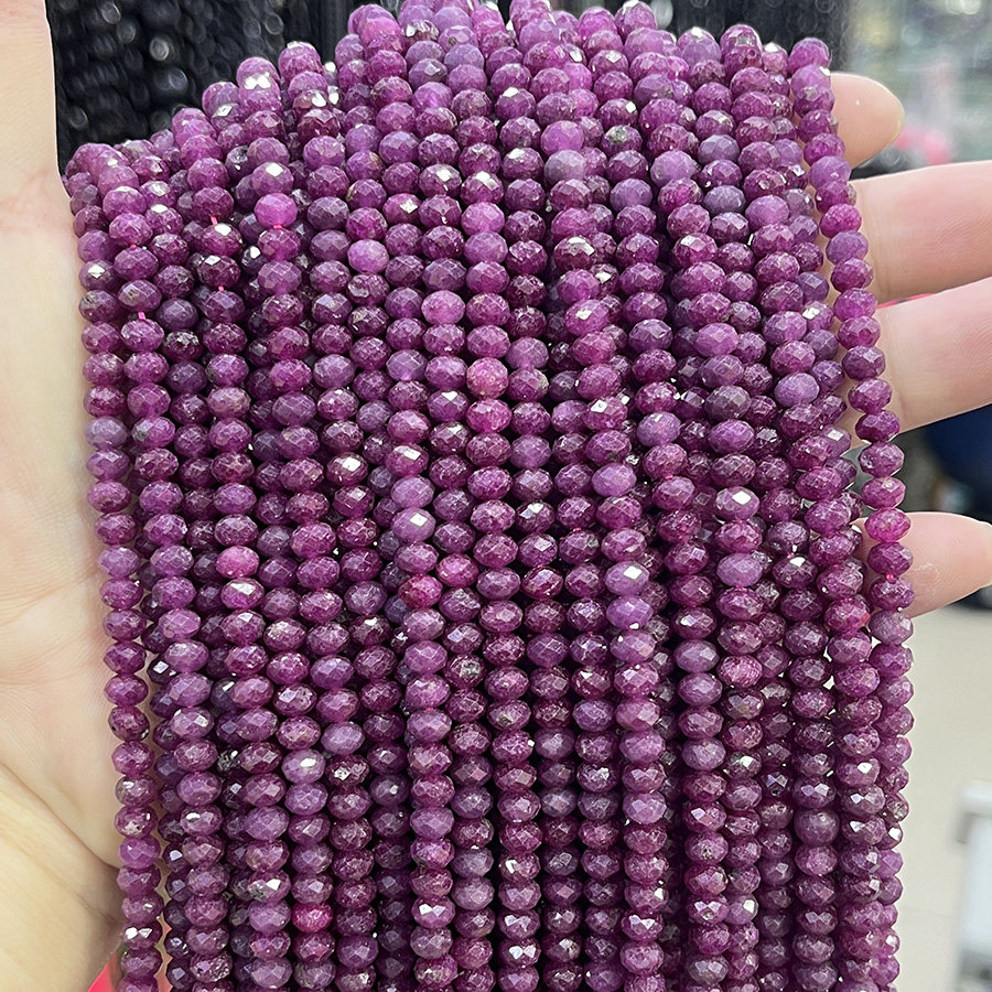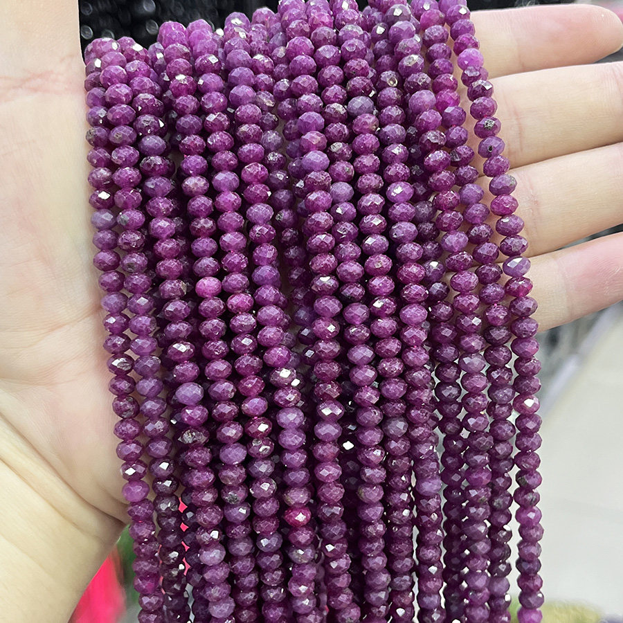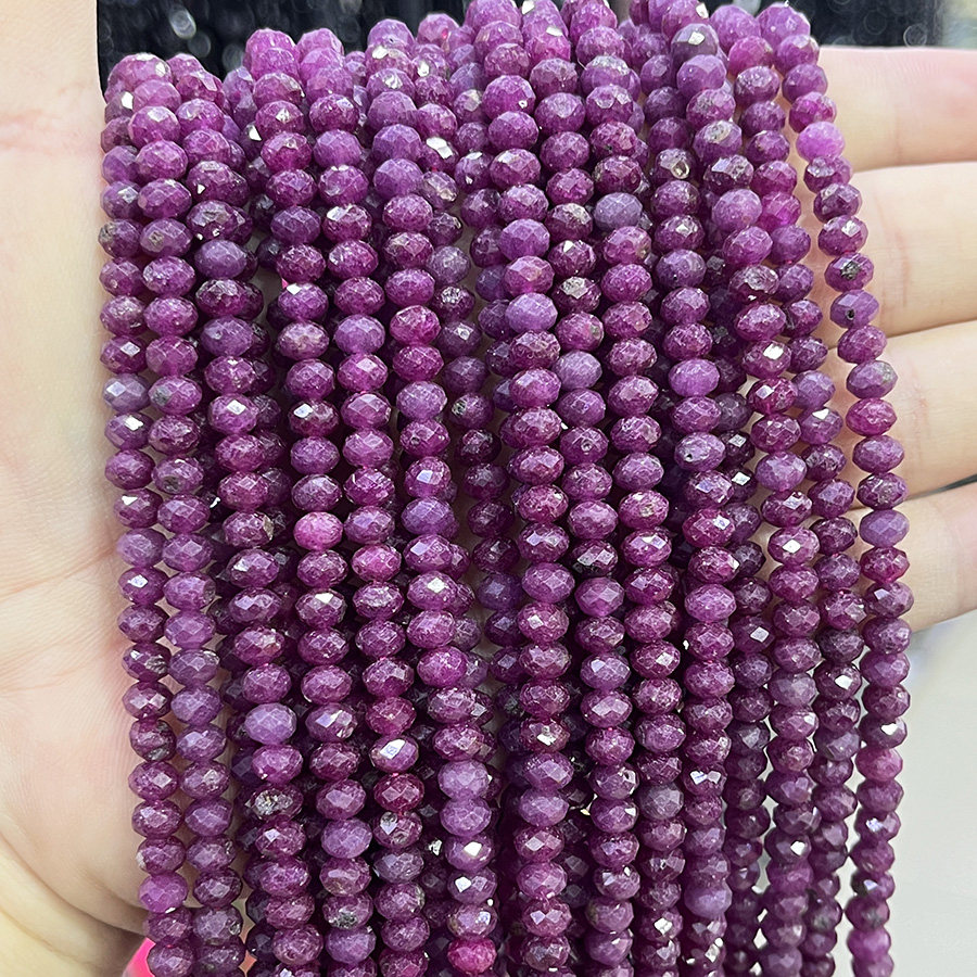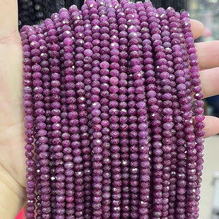 天然红宝石盘珠切面红水晶散珠手链项链半成品DIY手串饰品4x6mm
