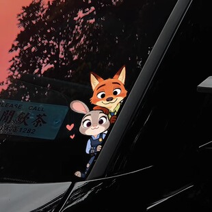 疯狂动物城朱迪尼克汽车装 饰贴纸可爱卡通兔子警官电动车划痕遮挡