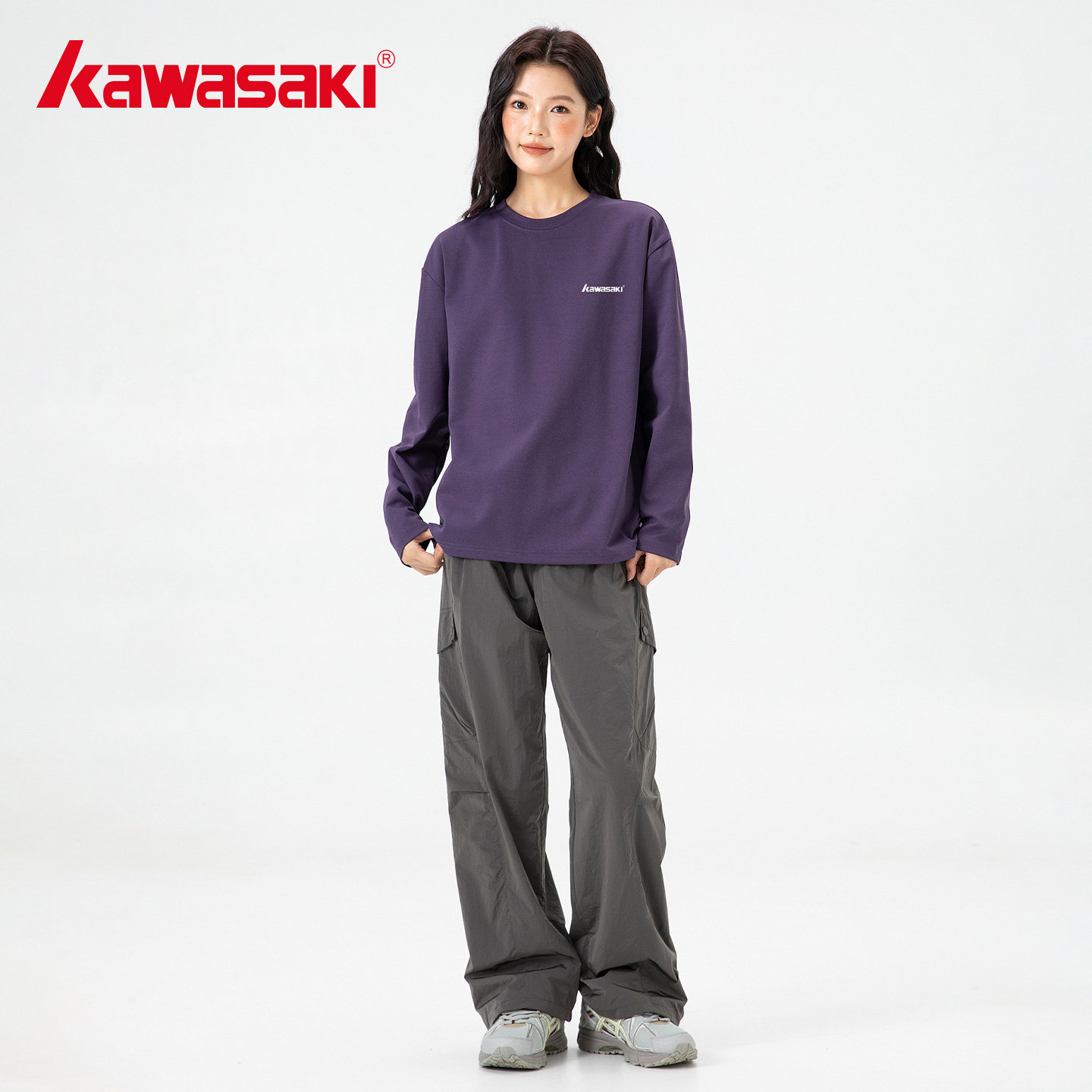 Kawasaki川崎正品 T恤 城市慢跑风轻量运动上衣女防晒健身吸汗长袖