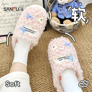 2025新款 三福棉拖鞋 冬季 女款 少女厚底室内家居毛绒保暖包头半拖鞋