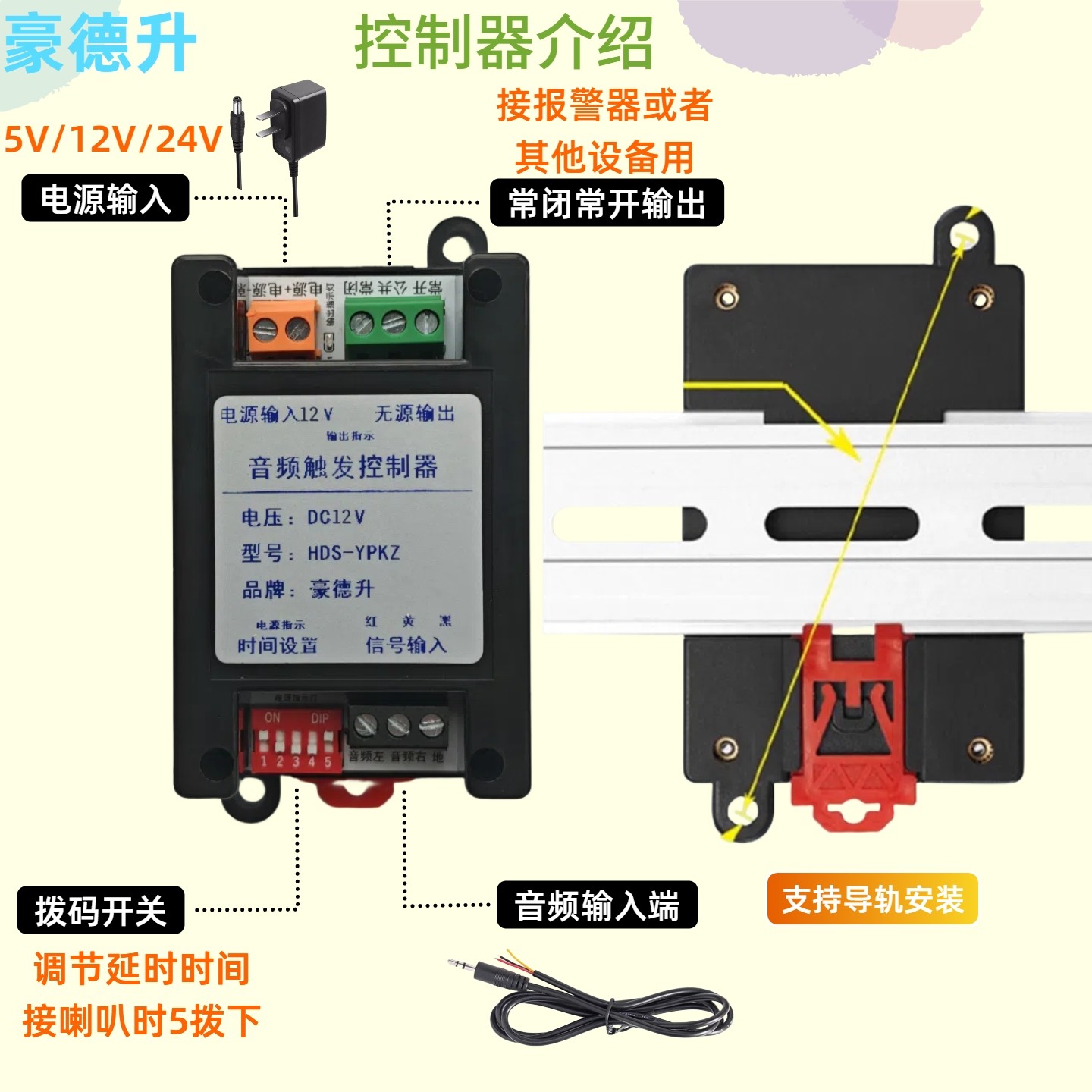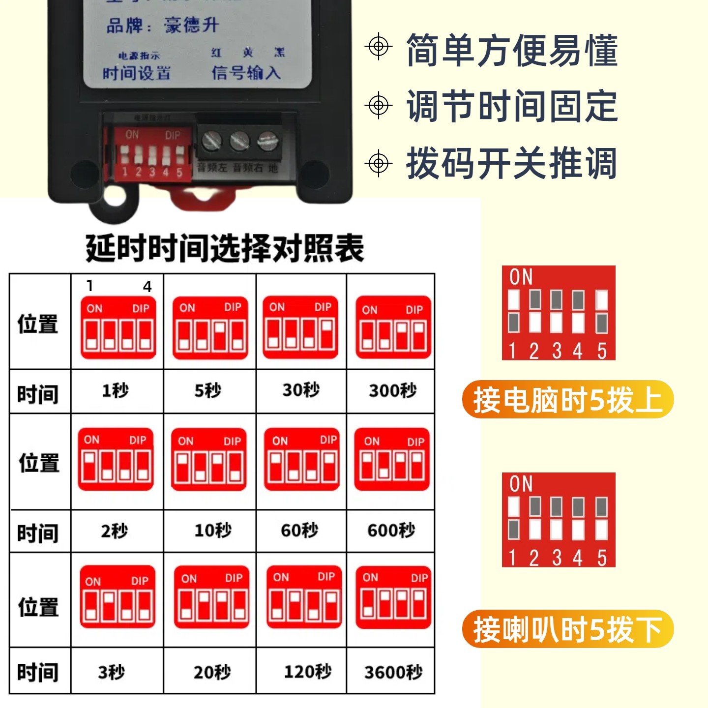 5V12V24V电脑手机音频信号触发控制器开关延时语音喇叭继电器模块
