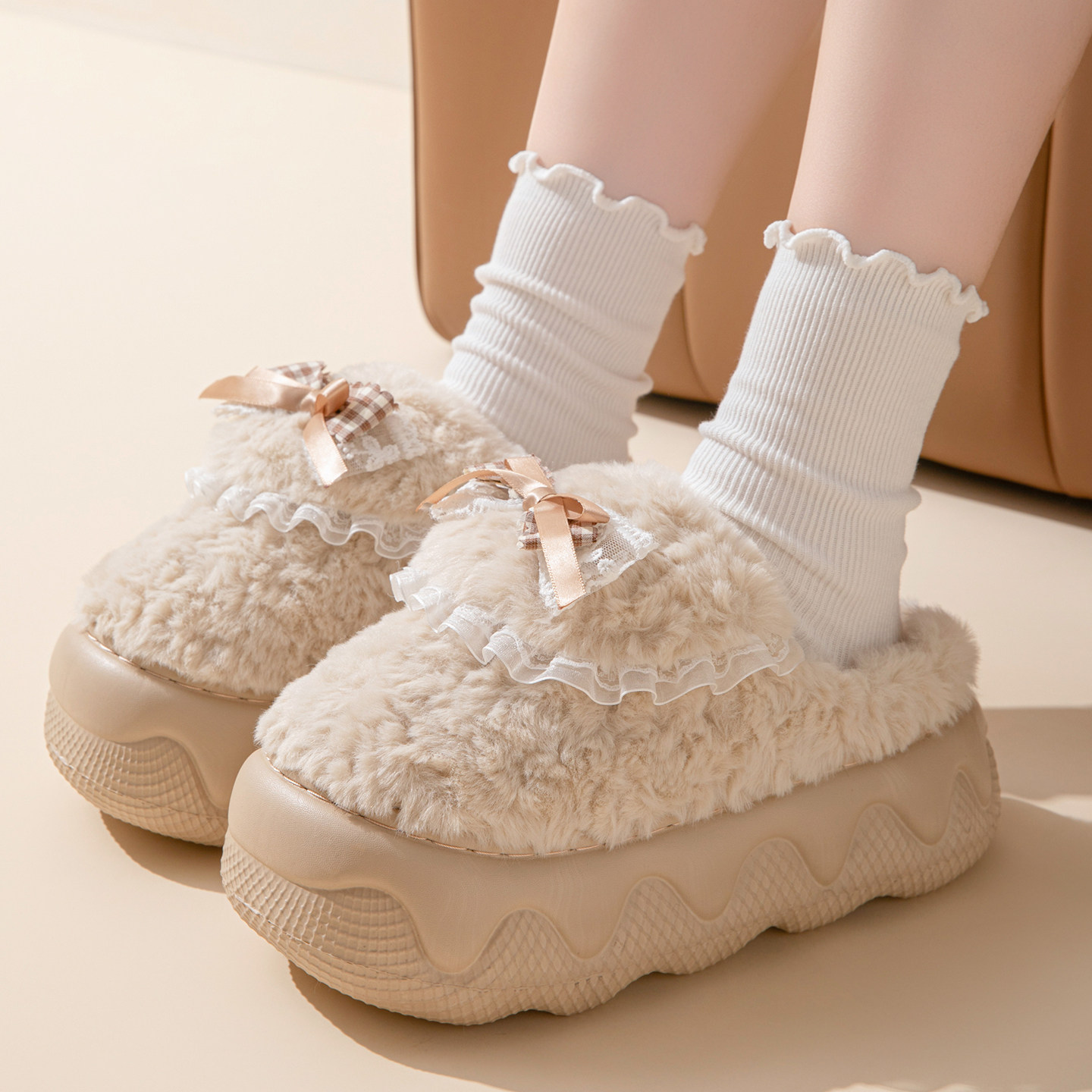 冬季 居家可爱毛毛拖鞋 加绒加厚保暖外穿防滑 女新款 厚底增高棉拖鞋