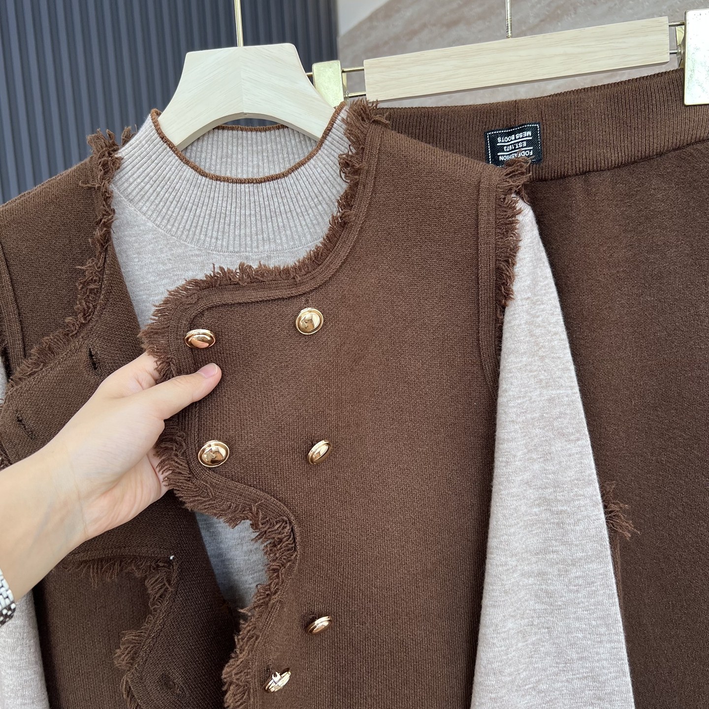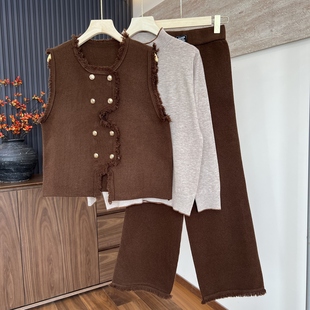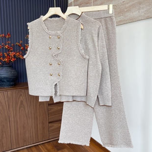 新款 洋气三件套毛衣中老年女士气质上下套装 秋季 时尚 针织衫 妈妈装