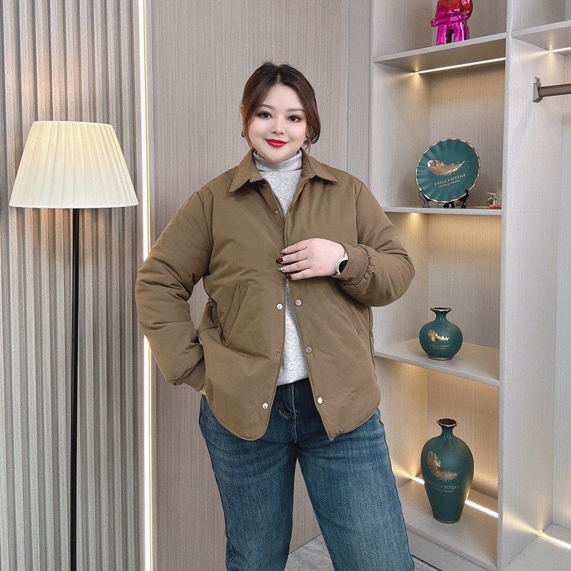 休闲百搭夹棉衬衣小棉衣 胖mm宽松显瘦时尚 冬装 轻薄棉衣外套女大码