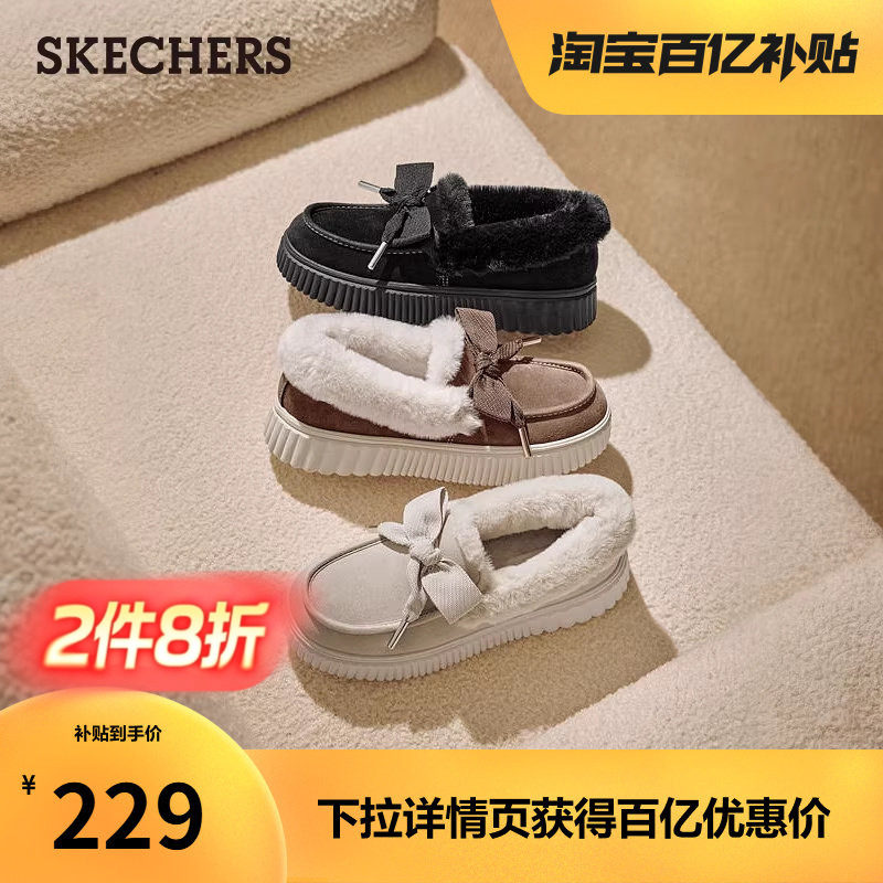 冬季 豆豆鞋 新款 绒面保暖舒适乐福鞋 女浅口单鞋 斯凯奇蝴蝶糕糕鞋