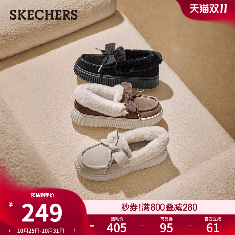 新款 冬加绒鞋 女浅口单鞋 豆豆鞋 绒面保暖舒适乐福鞋 斯凯奇2025冬季