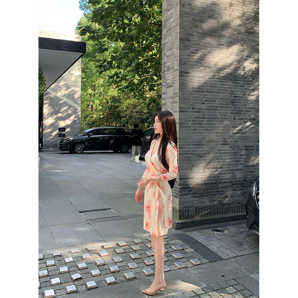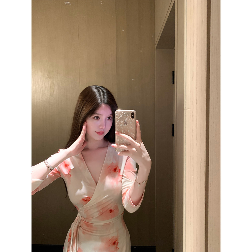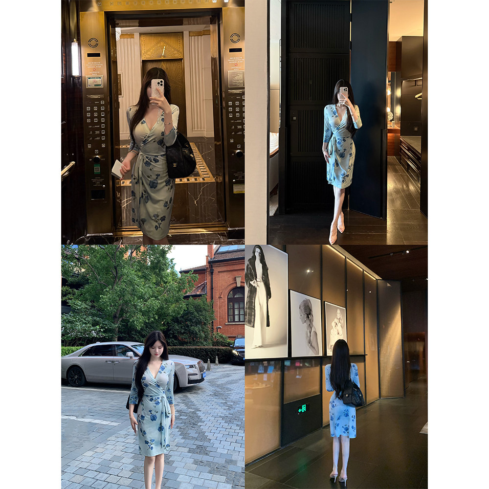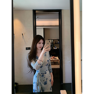 气质典雅弹力修身 古早姐姐感 印花针织连衣裙女 SWAN司凰轻奢 THE