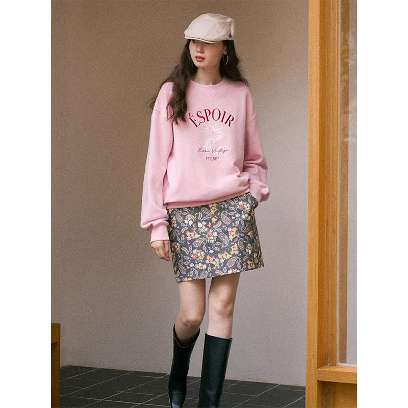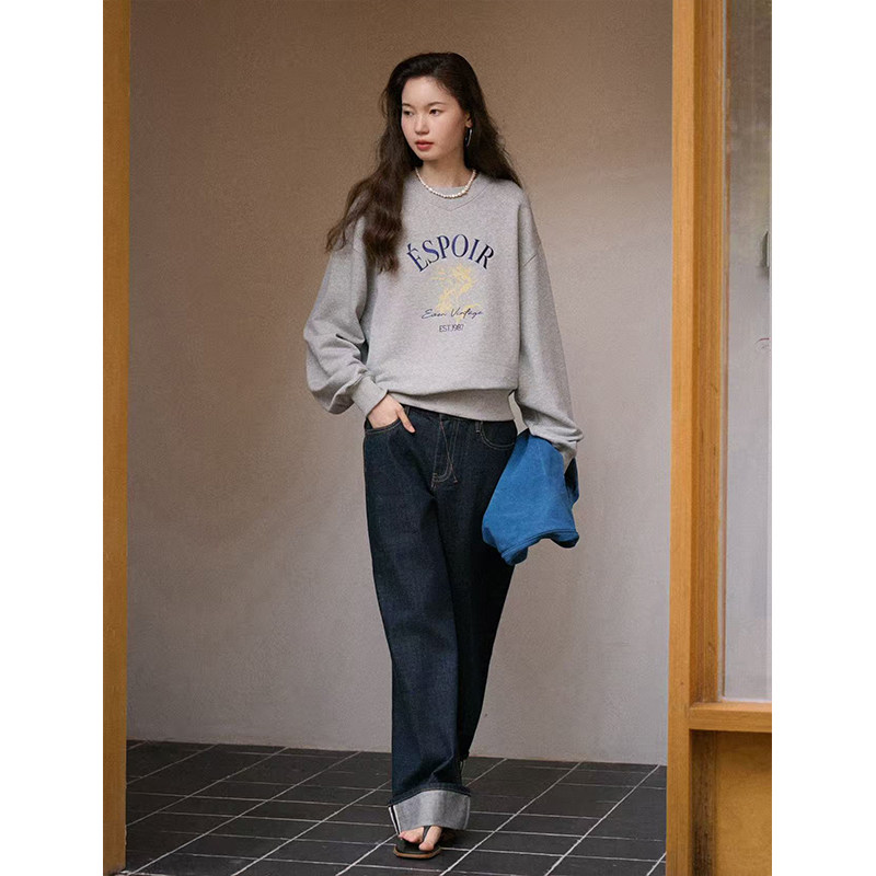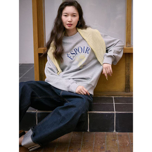 松弛肌理感字母logo刺绣印花圆领套头卫衣 棉混纺 Even Vintage
